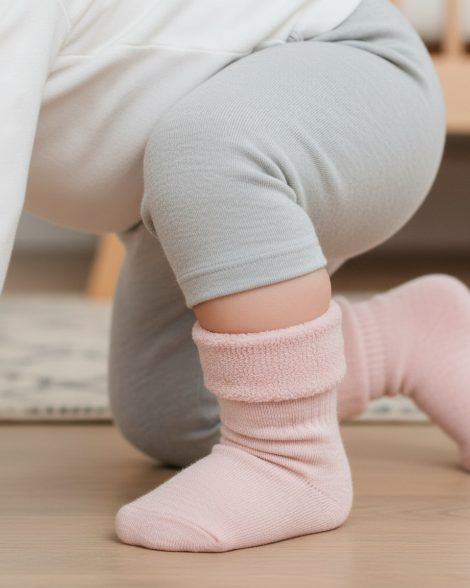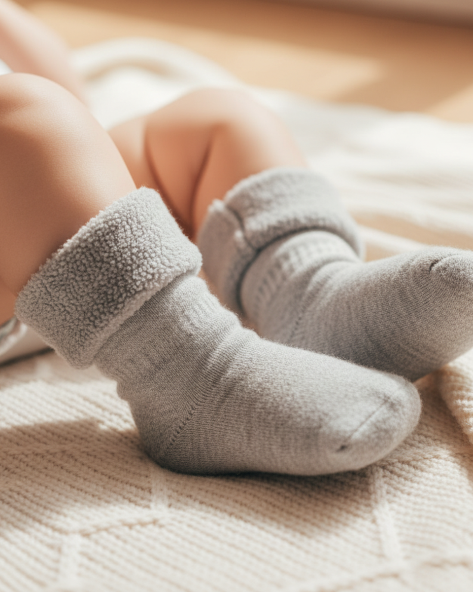 Give your baby the sweetest start with our 85% Merino sherpa socks, crafted to keep every tiny toe wrapped in warmth and love. Like a gentle hug, the plush fleece lining caresses delicate skin, while Merino wool’s naturally crimped fibers trap warmth in soft little air pockets, cozying your baby without ever overheating. Each pair helps your little one stay perfectly warm, dry, and comfortable, no matter the season. Naturally breathable, moisture-wicking, and silky smooth, Merino wool is gentle enough for even the most sensitive skin. Soft, soothing, and full of care, these wool socks are made for life’s snuggliest moments.