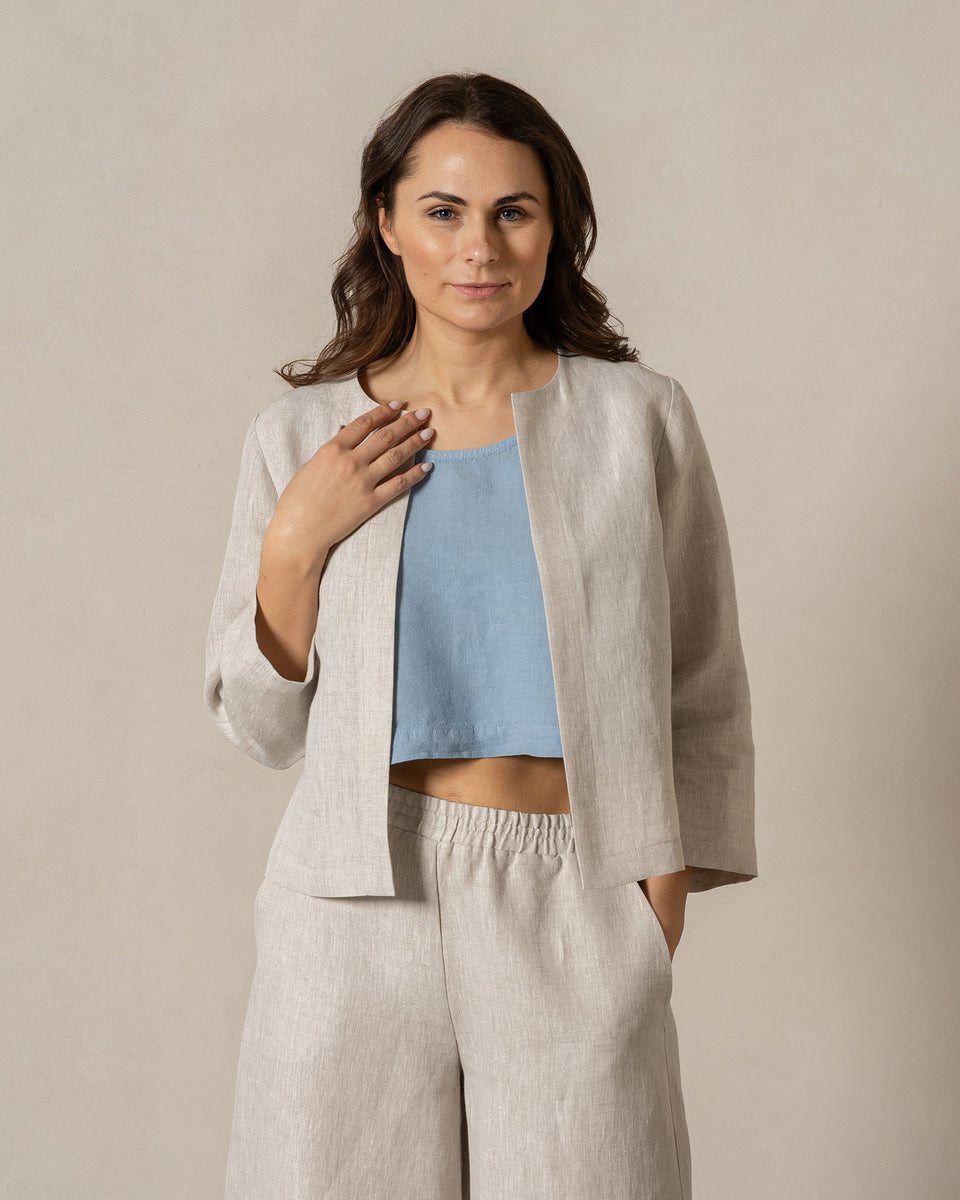 Elevate your style with this women’s Linen A-line jacket, designed for a flattering, flowy fit that gently skims the body. Made from high-quality, breathable 100% Linen, the casual jacket delivers both comfort and sophistication. The soft drape and subtle tailoring create a polished yet relaxed look, while the scoop neckline offers a chic, feminine touch. Perfect for layering over dresses, blouses, or casual tees, this lightweight Linen blazer transitions seamlessly from day to night and from work to weekend. A versatile wardrobe staple for spring, summer, and travel.