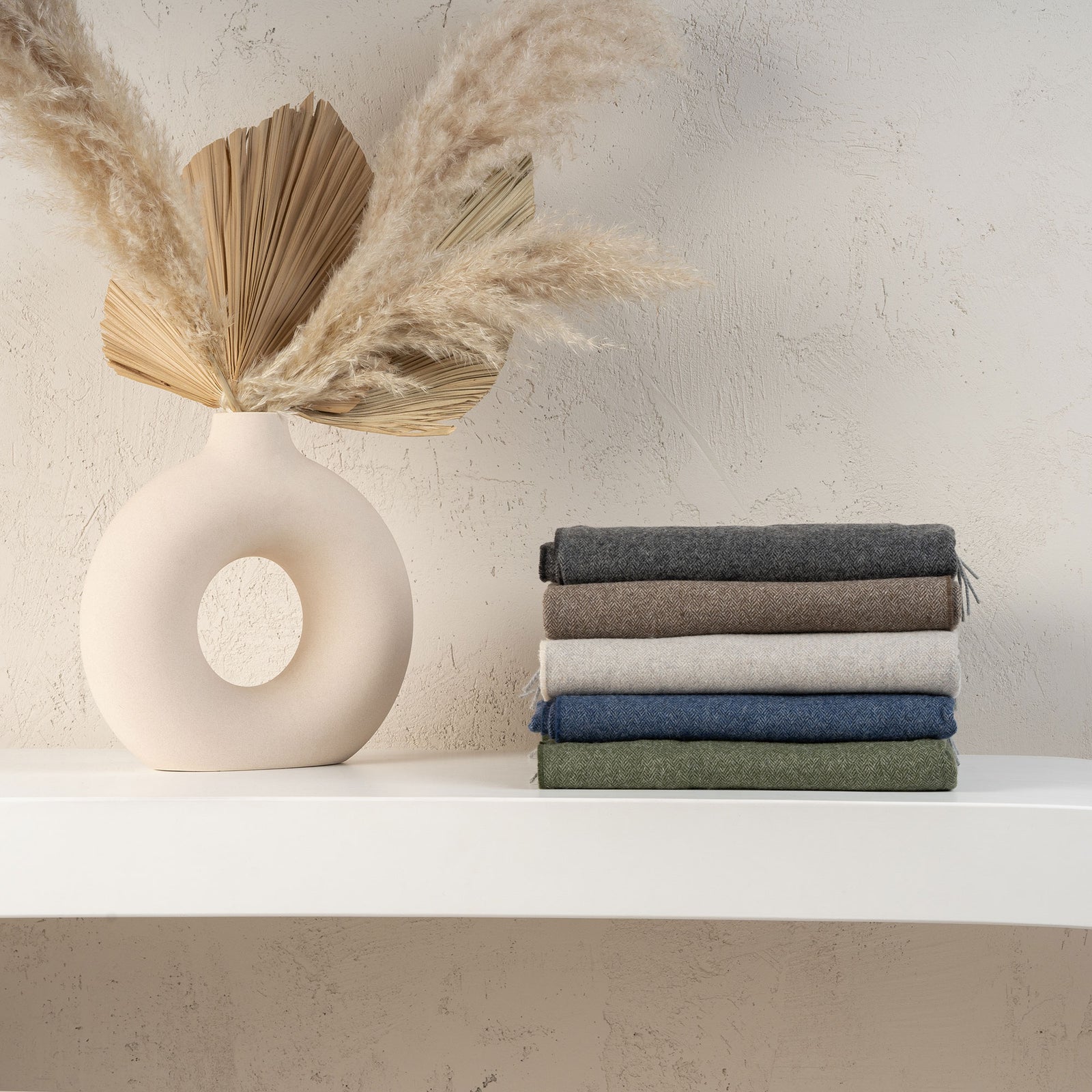 Introducing our latest home textile collection, specially curated for your living room. Our collection features a range of blankets made from high-quality materials, including 100% linen, pure Merino wool, cashmere, and virgin wool. Each blanket is carefully crafted to provide a comfortable and cozy experience for you and your loved ones. Whether you're snuggling up on the couch for a movie night or simply relaxing after a long day, our blankets will keep you warm and comfortable.