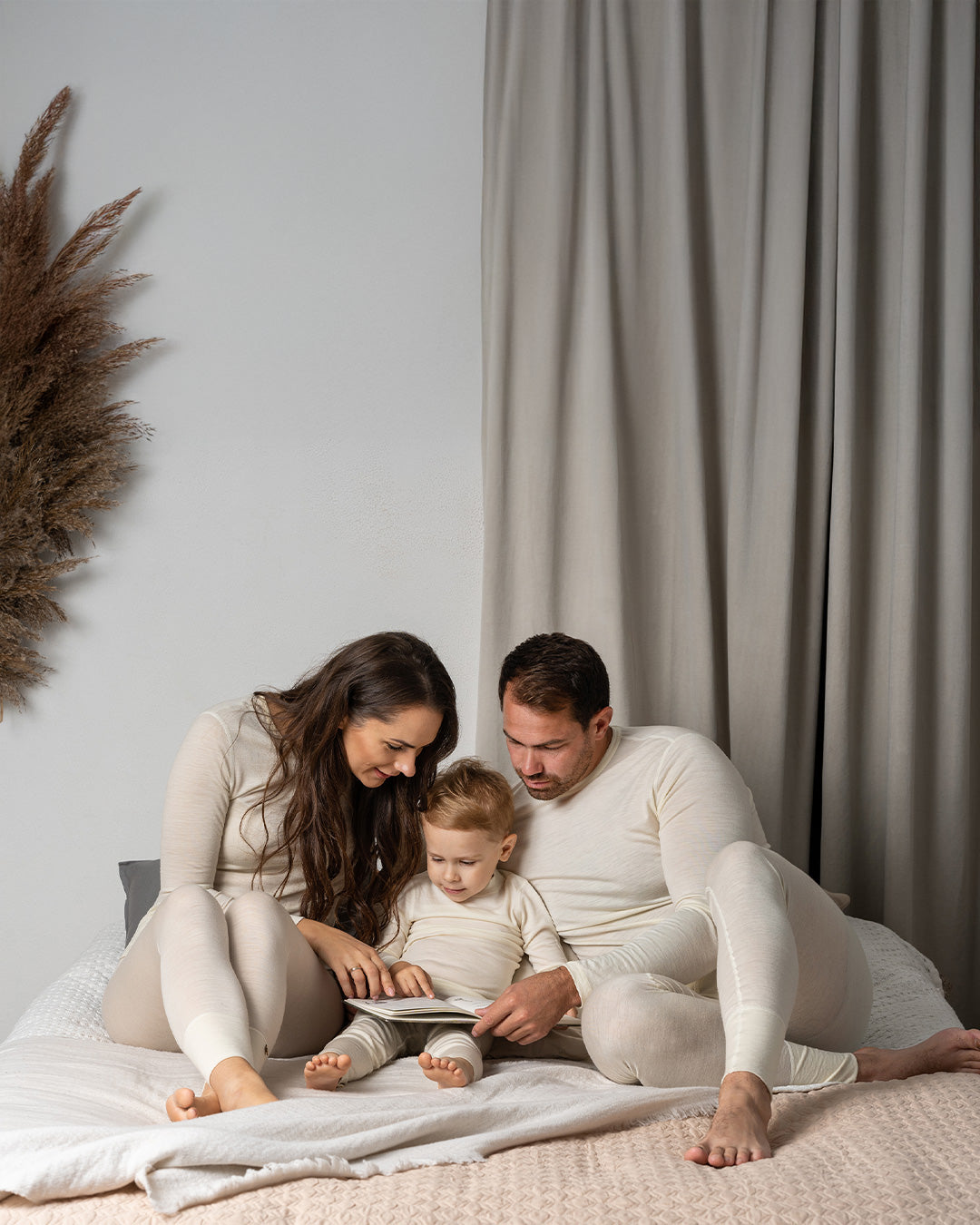 Looking for the perfect jammies for your children? Check out our collection of unisex naturally breathable pajama sets for kids, made from 100% finest quality Merino wool, which not only ensures the softest feeling but also keeps your baby comfortably warm without overheating. Stylish and organic PJs will soon become your kid’s favorite piece of clothing. Adorable sleepwear features thermoregulating properties, good breathability, and non-itchy flatlock seams. Therefore, your little angel will always feel cozy, dry, and relaxed. Good thing that the versatile style allows this clothing to be worn on more occasions than sleeping because there is a big chance that your baby girl or boy will not want to take it off.
