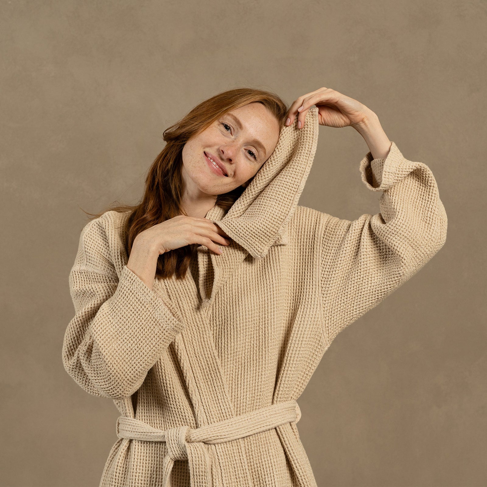 Discover our durable Waffle collection, where every piece is designed for comfort and practicality. Made from waffle fabric, known for its special texture and great absorbency, our collection includes towels, robes, ponchos for kids, blankets, and more. Waffle fabric is lightweight and breathable, making it perfect for everyday use. Its unique pattern not only looks unique but also helps soak up moisture quickly, so things dry faster and stay fresh longer.