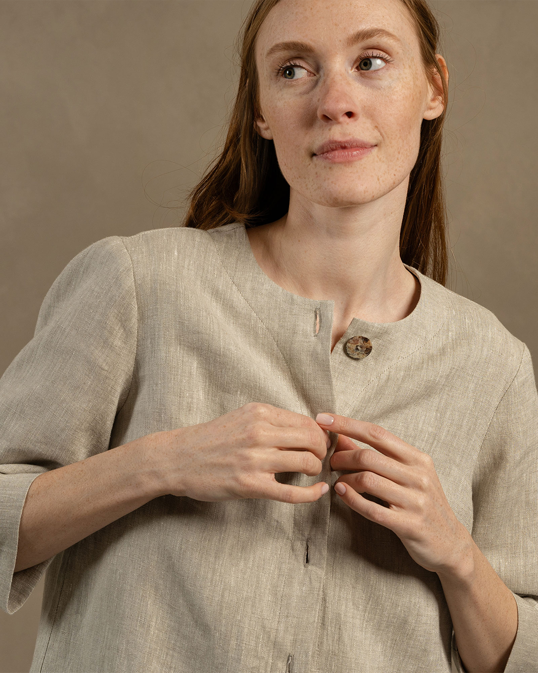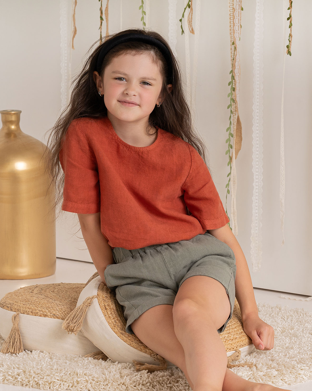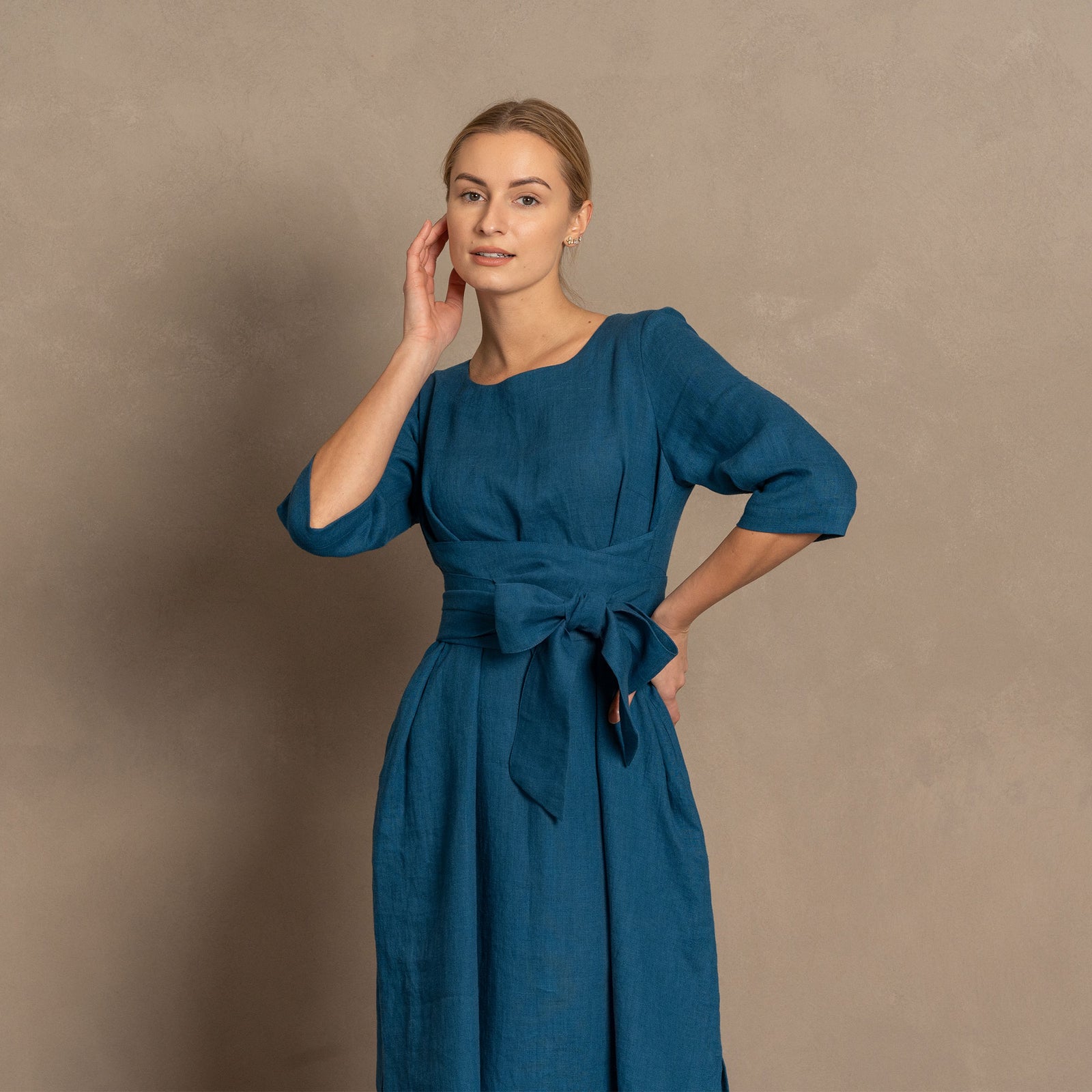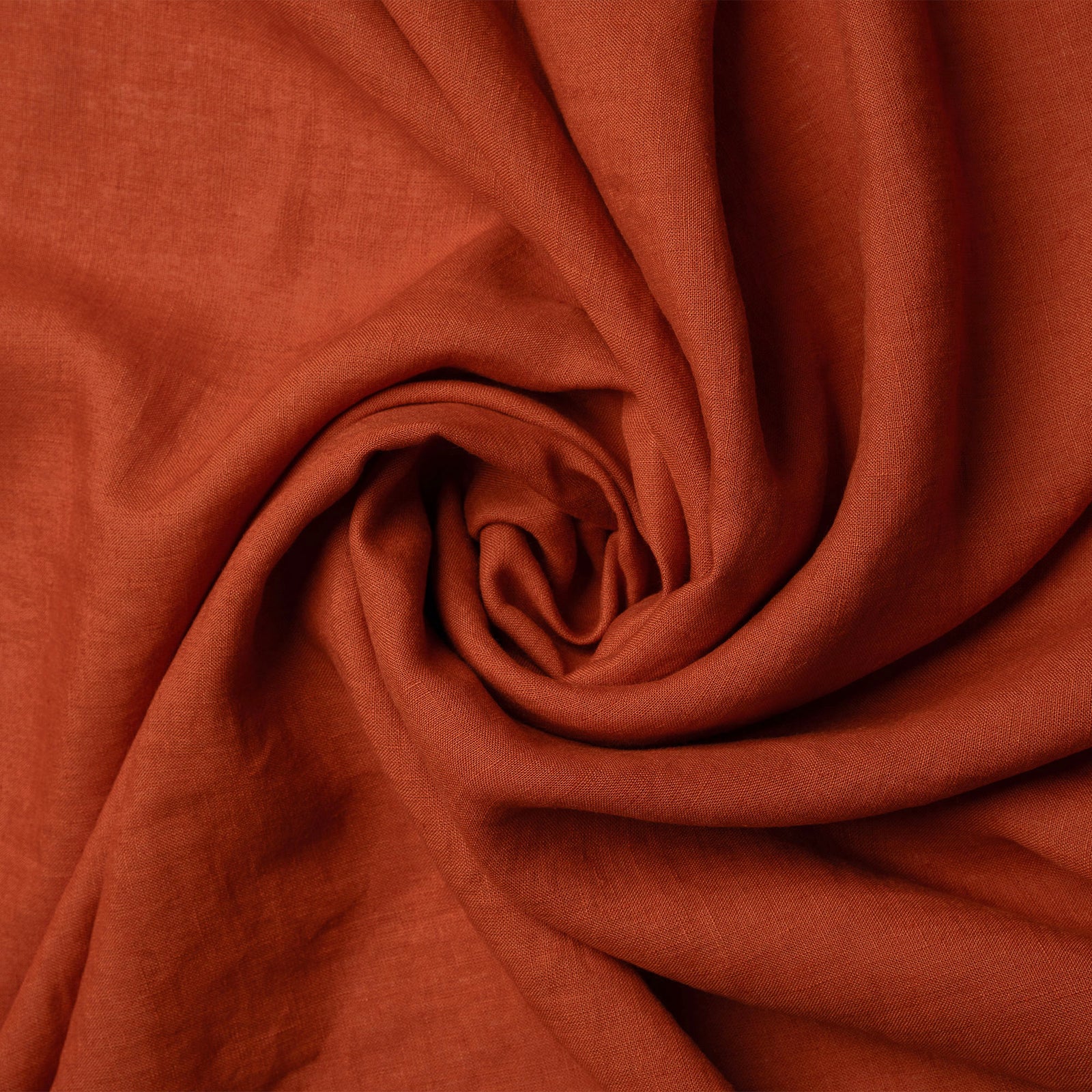 All-time bestseller in linen dresses, the Eliana wrap dress is the most beloved garment, especially in Cinnamon Red color.