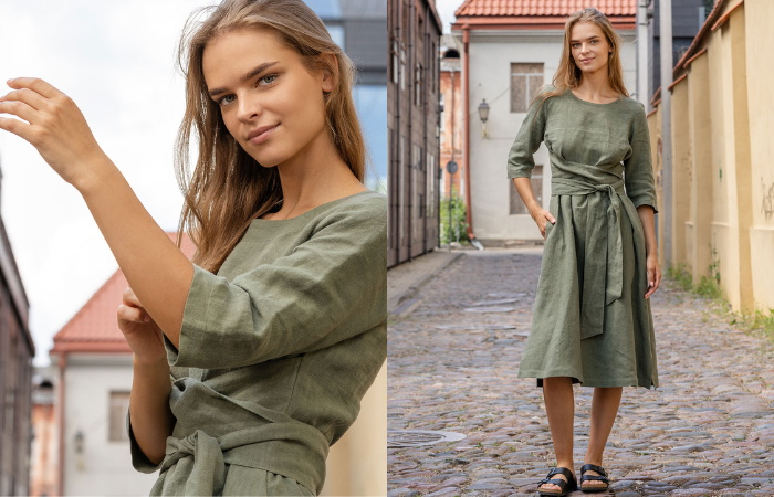 Our fast-trending dress, with its unique design, is adored by our customers, especially in the earthy Stone Green color.