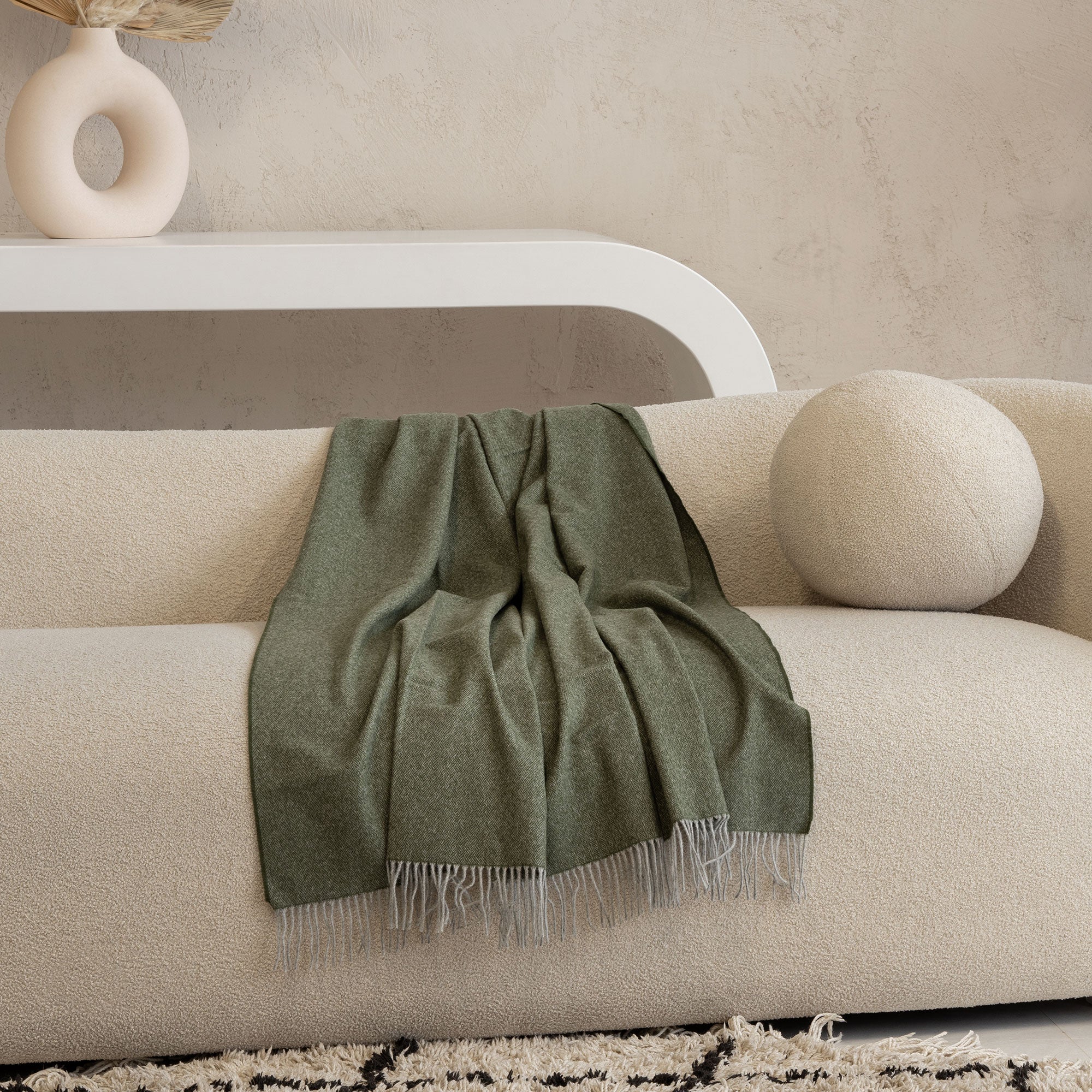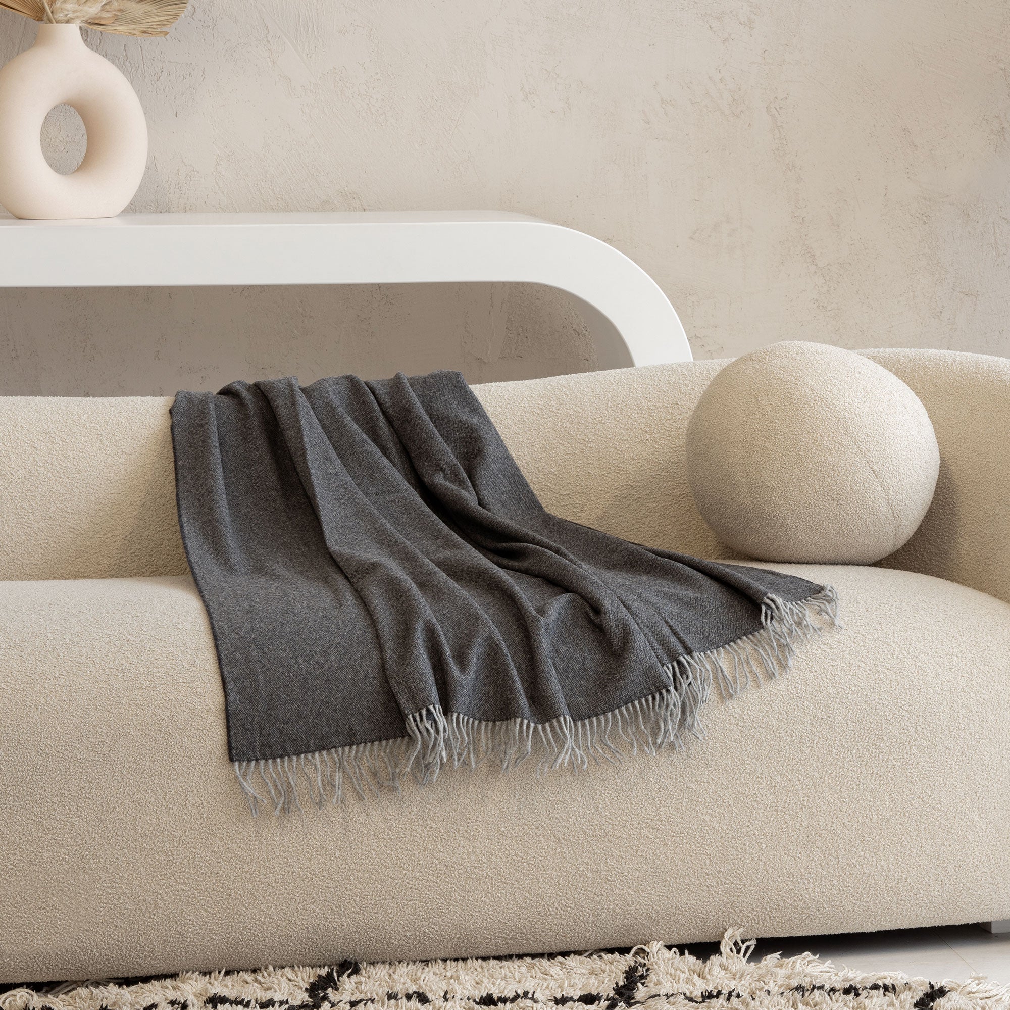Tired of constantly replacing low-quality blankets that wear out quickly? Look no further than our luxurious plaid blanket made of extra-fine Merino wool and embellished with 10% cashmere. Its elegant herringbone-style microstructure adds a dynamic and contemporary touch to any room, while its unique blend of soft fibers ensures long-lasting comfort, softness, and coziness. Whether draping the edge of your sofa this organic throw plaid will embrace every moment of relaxation with its warm and luxurious features. Extra-fine virgin merino wool and cashmere blend guarantee high quality and exceptional comfort, ensuring a healthy and natural moment of relaxation.