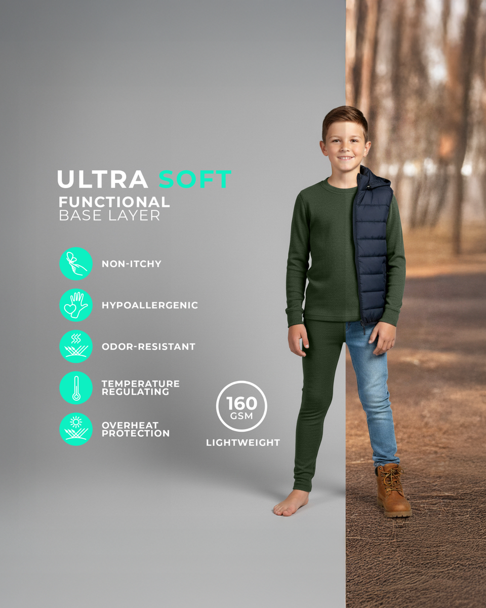 The menique combo offers a modern, unisex design hand-knitted from 100% eco-friendly Merino wool, featuring a 160gsm long sleeve tee and matching pants. Bright, playful, and durable, this two-piece set provides timeless style and comfort for little explorers, from morning to night. Crafted to withstand daily adventures, the soft, non-itchy material ensures freedom of movement while keeping your child warm in winter and cool in summer. Made from organic Merino wool, it is gentle on both the skin and the planet, offering UV protection, antimicrobial properties, and easy, stainproof care for busy moms. Perfect for everyday coziness.