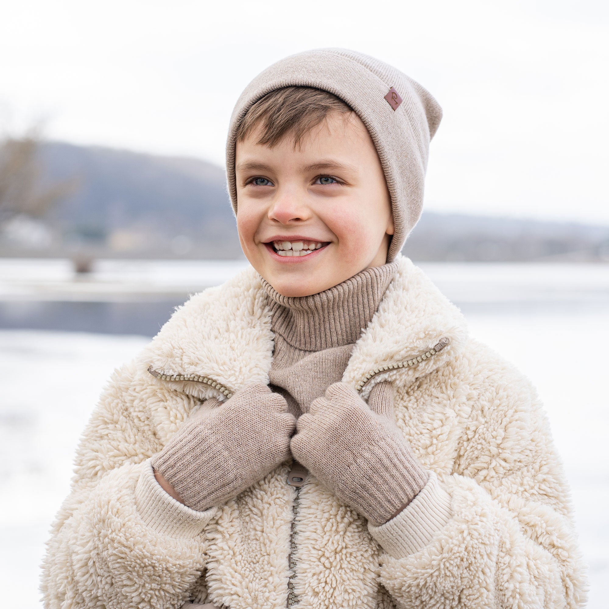 Get your kiddo kitted for the chilly months ahead with our beanie hat. Crafted from a blend of finest Merino wool and cashmere fibers, this kids’ hat will be the best friend when leaving the heated apartment for the frigid outdoors. It has the power to keep little one’s head warm, fresh, and cozy day in and day out. This cashmere beanie comes in assortment of classic colors and works well with any scarf and glove combo, so your mini-me can look cute without even trying. In addition, this organic and natural hat for kids is a sumptuously soft and also is thick enough to support all activities, including tobogganing, playing in the snow, or hitting the slopes.
