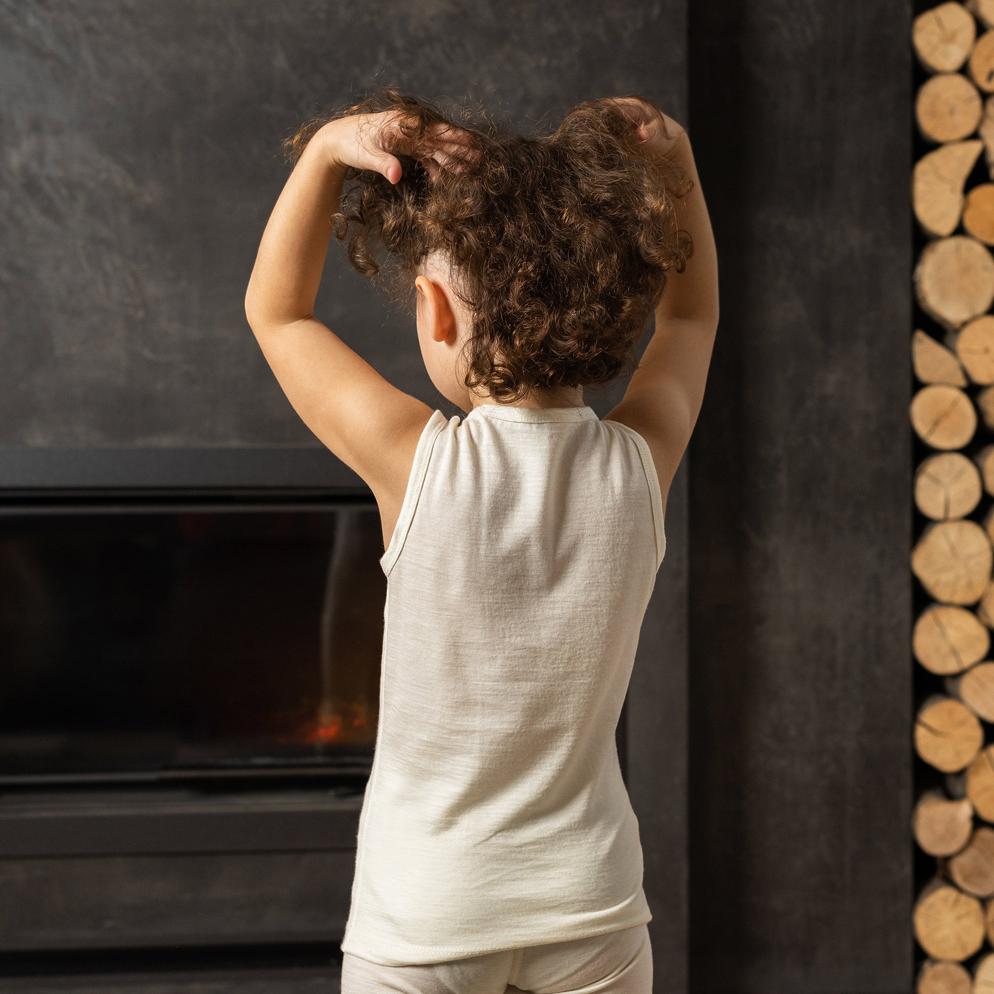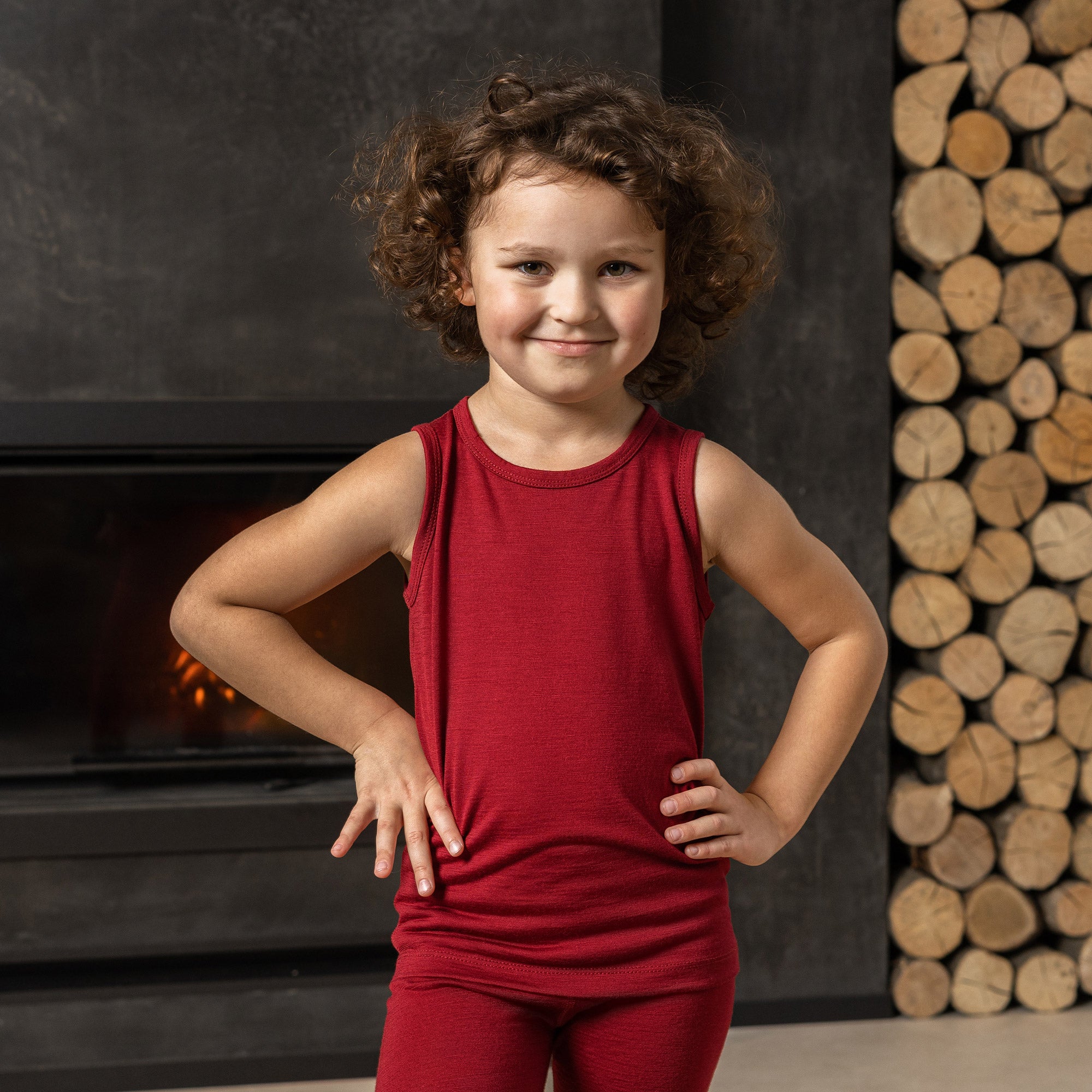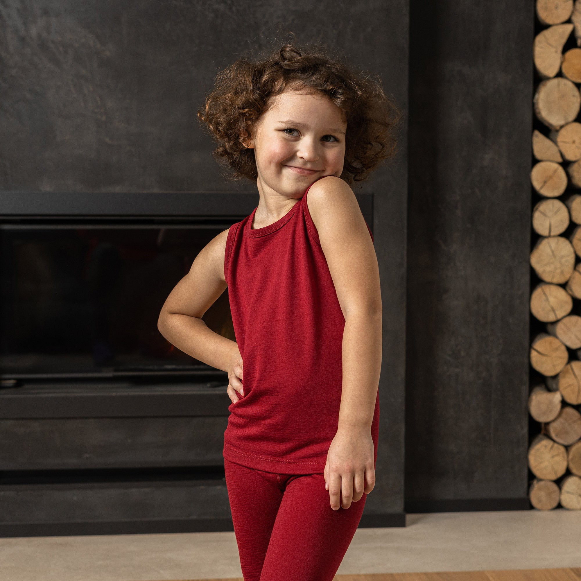 Your little one just does not seem to stop moving? menique knows how crucial freedom is and that is why we have this sleeveless t-shirt for kids. Light 160gsm and extremely breathable, this base layer t-shirt without sleeves is an indispensable part of everyday outfit for the smallest ones, because its thermoregulatory qualities guarantee comfort. Crafted from 100% Merino wool, this organic tank top is hypoallergenic and stain resistant, so you will not have to worry about every step your child takes. Functional base design is unisex, easy fitting and in a great bright color which will smoothly enlighten the current collection of your kid’s vest tops.