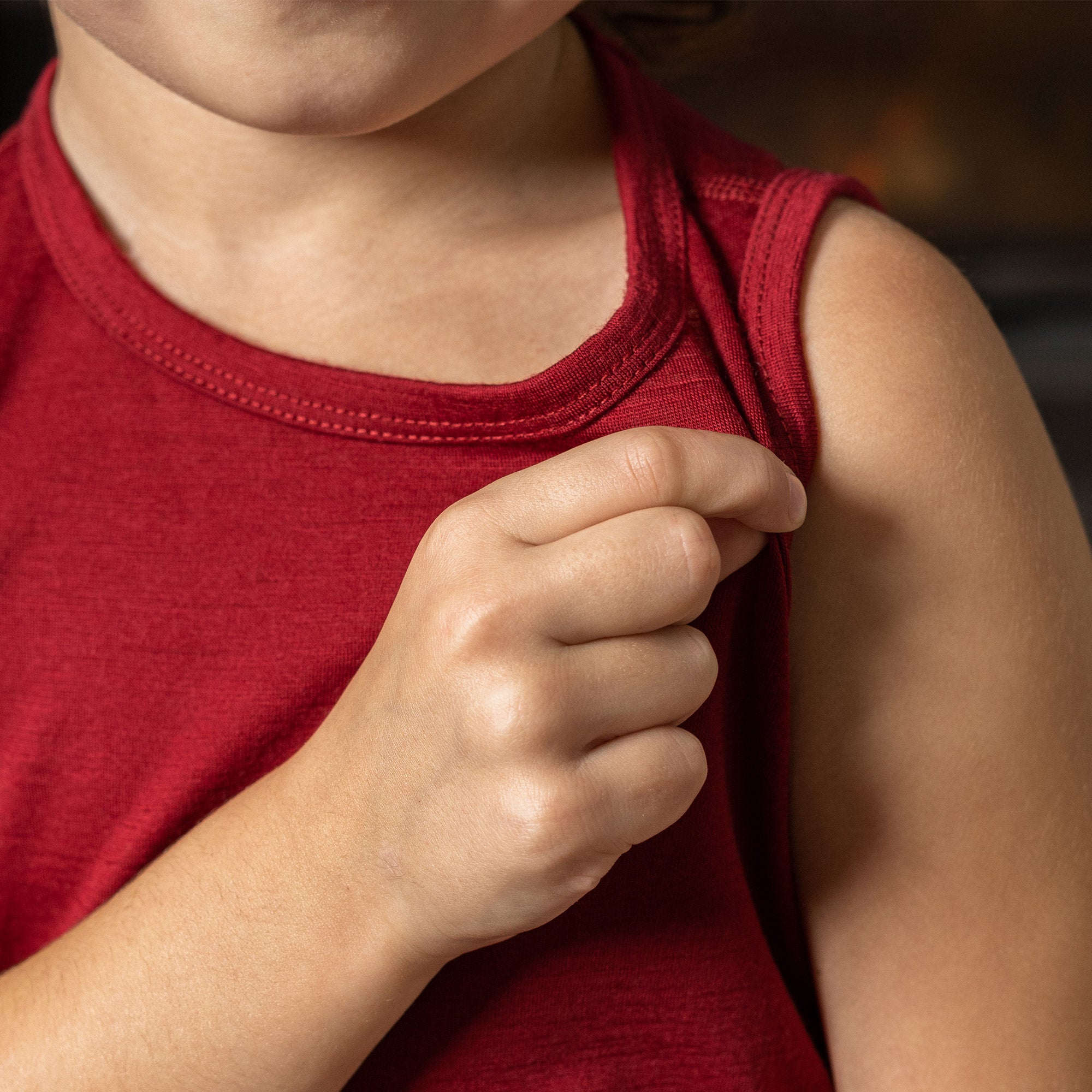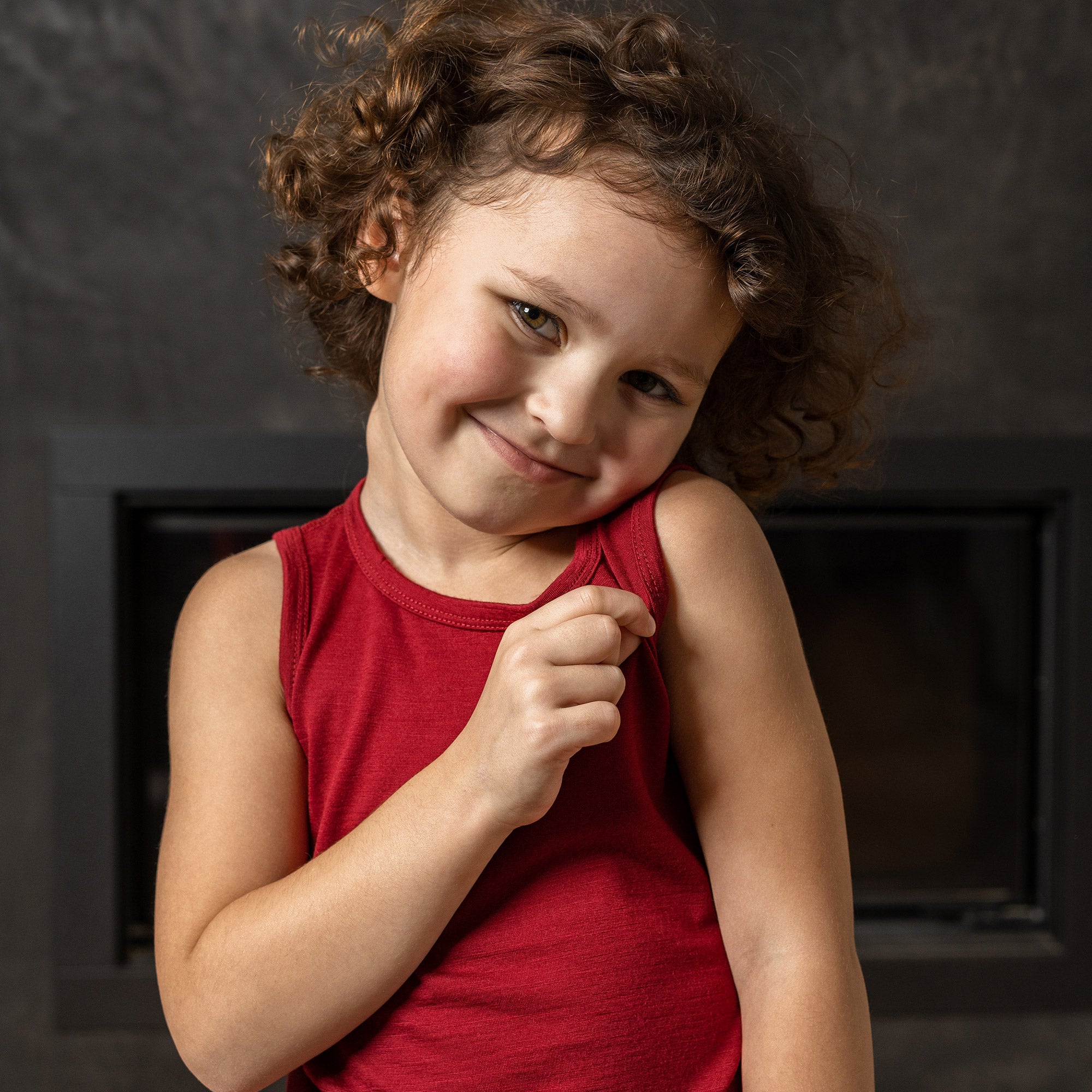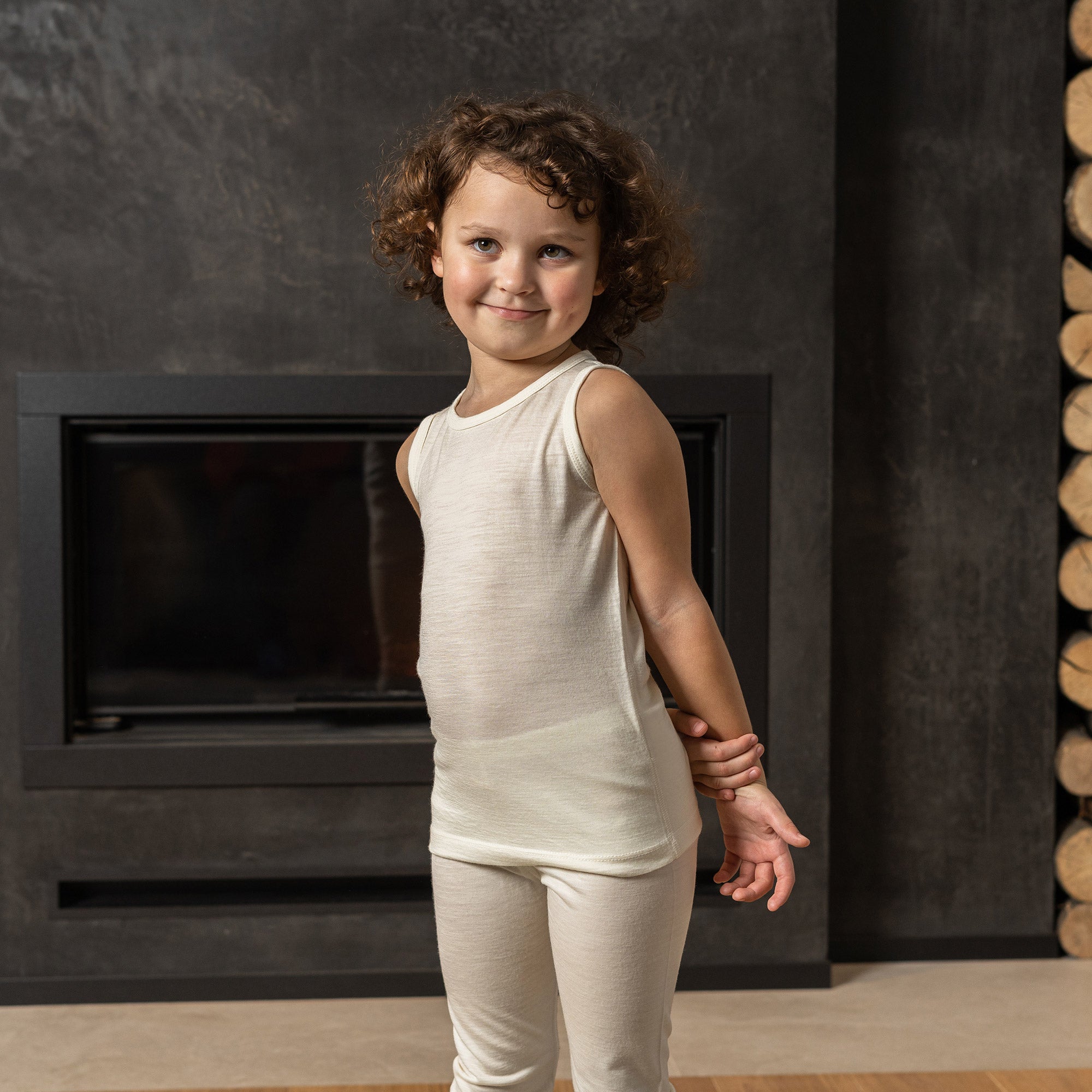 Your little one just does not seem to stop moving? menique knows how crucial freedom is and that is why we have this sleeveless t-shirt for kids. Light 160gsm and extremely breathable, this base layer t-shirt without sleeves is an indispensable part of everyday outfit for the smallest ones, because its thermoregulatory qualities guarantee comfort. Crafted from 100% Merino wool, this organic tank top is hypoallergenic and stain resistant, so you will not have to worry about every step your child takes. Functional base design is unisex, easy fitting and in a great bright color which will smoothly enlighten the current collection of your kid’s vest tops.