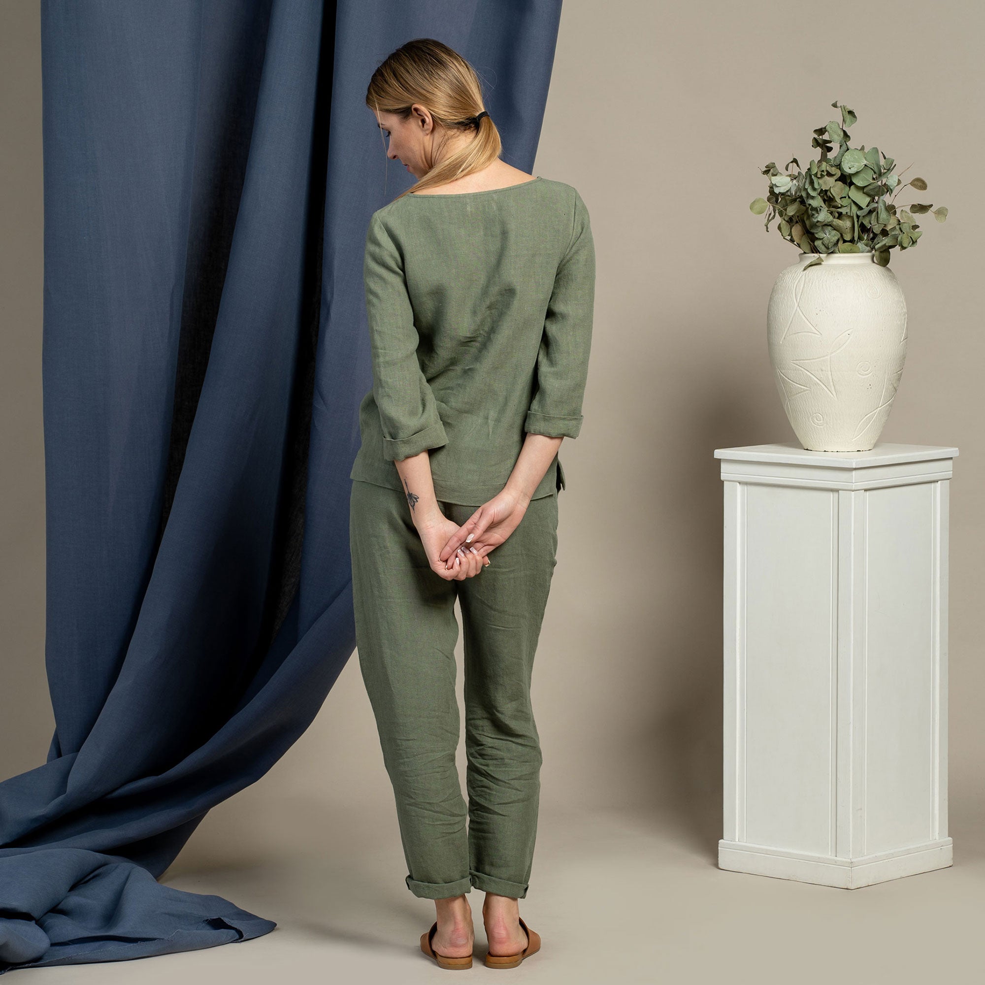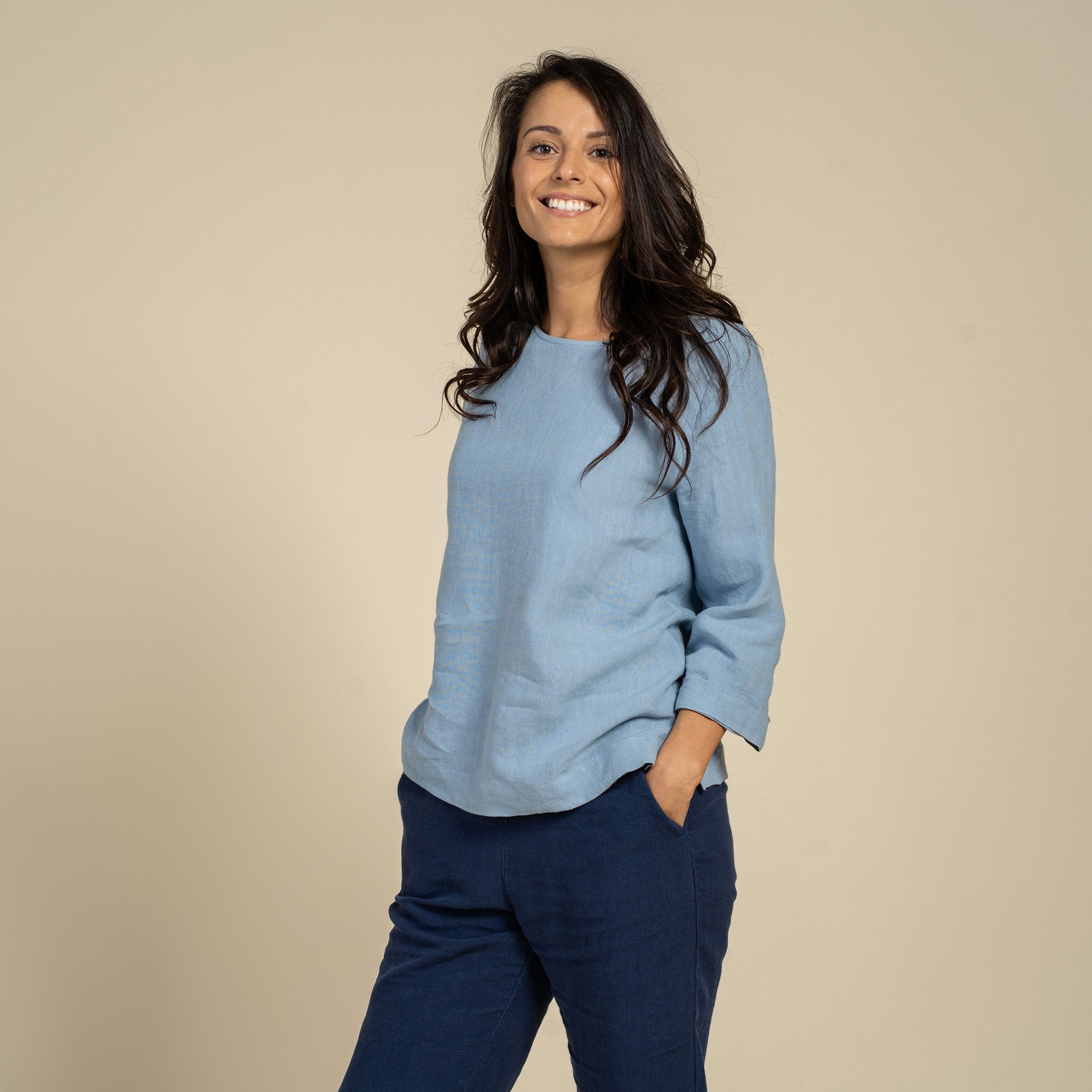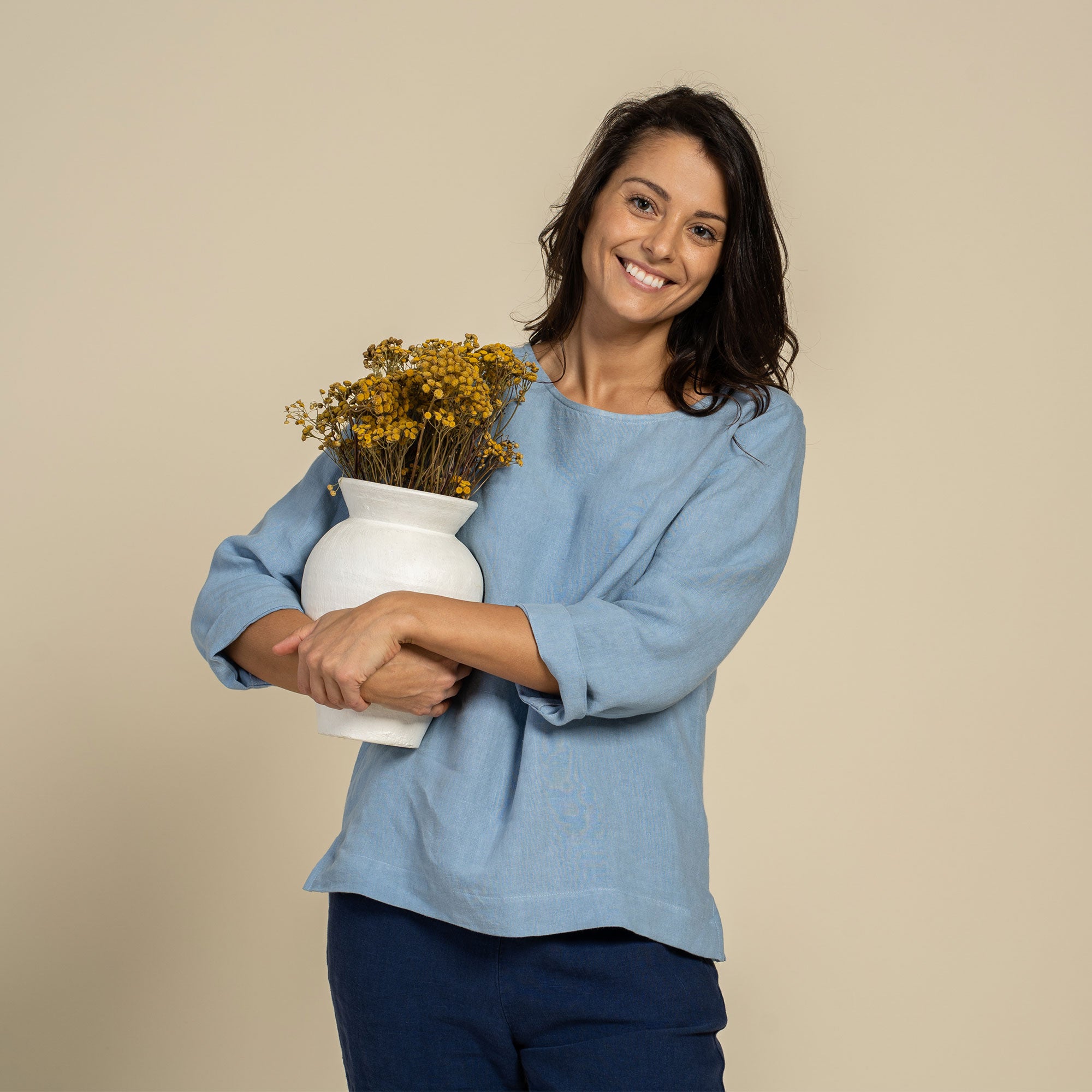 Stay cool, confident, and effortlessly chic in the Nora Linen blouse made with care from 100% premium Linen for all-day breathability and comfort. Lightweight and naturally cooling, this eco-friendly fabric makes long sleeve shirt your go-to top for warm-weather styling. Designed with refined simplicity, Linen shirt features a flattering boat neckline, a soft A-line silhouette, and elegant side slits that offer a relaxed fit around the hips. Boat neckline shirt tailored to move with you gracefully, comfortably, and with ease. From casual brunches to summer getaways, this versatile blouse pairs beautifully with jeans, Linen trousers, shorts, or skirts making Linen top a timeless staple for any woman’s wardrobe.