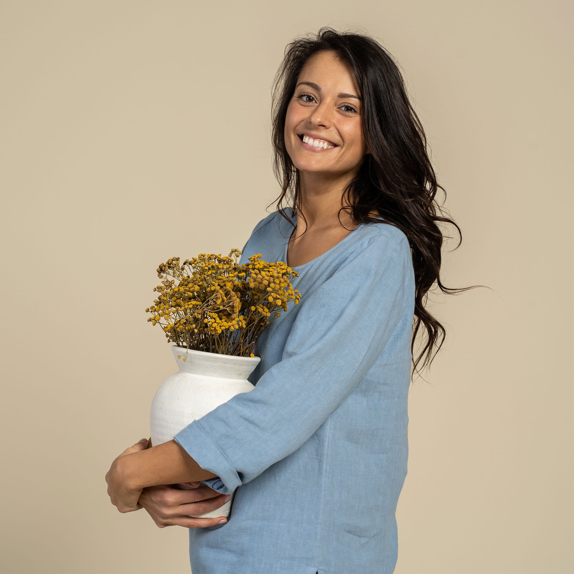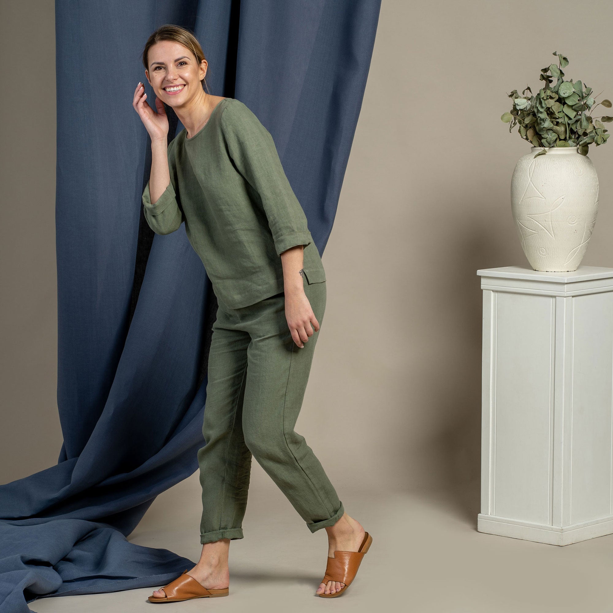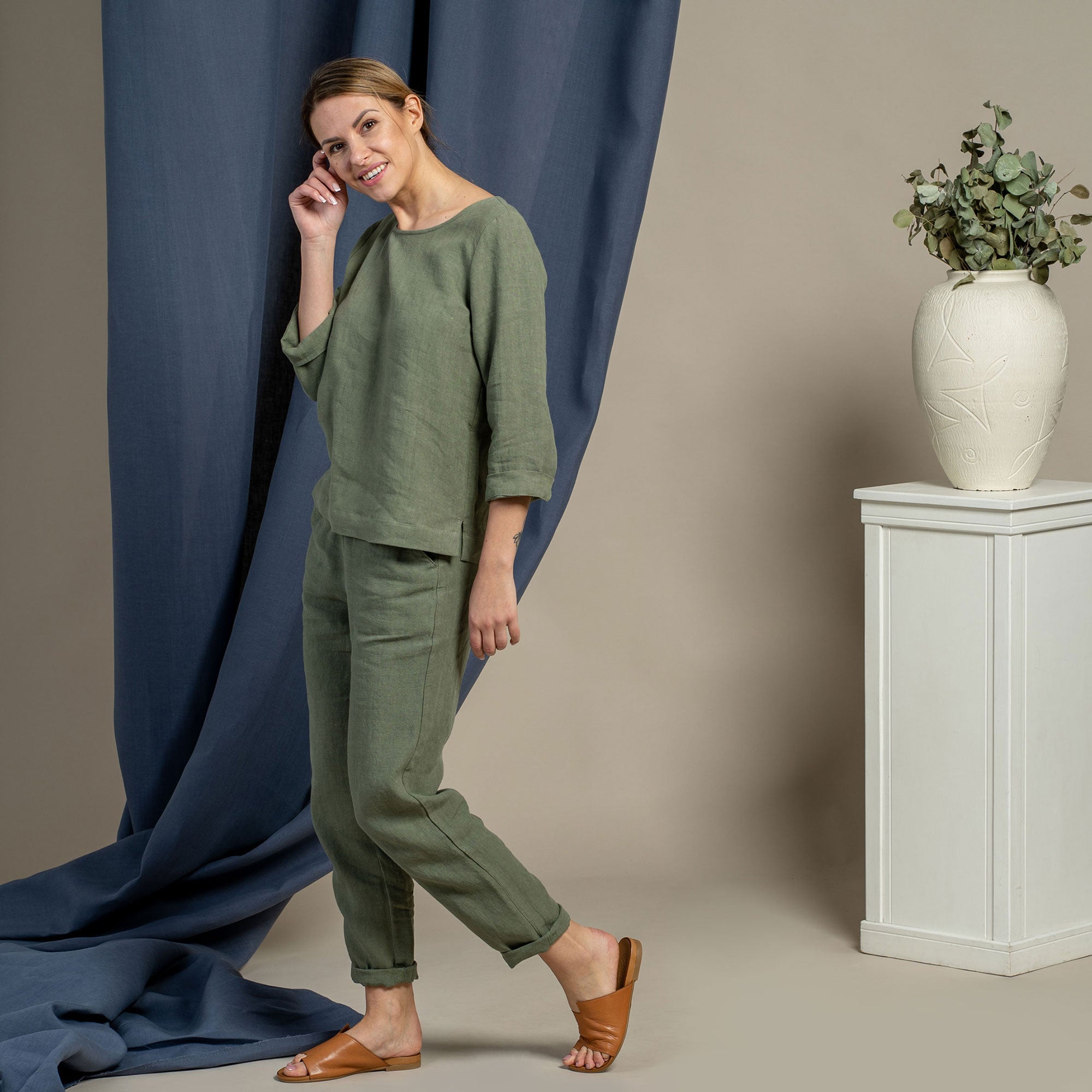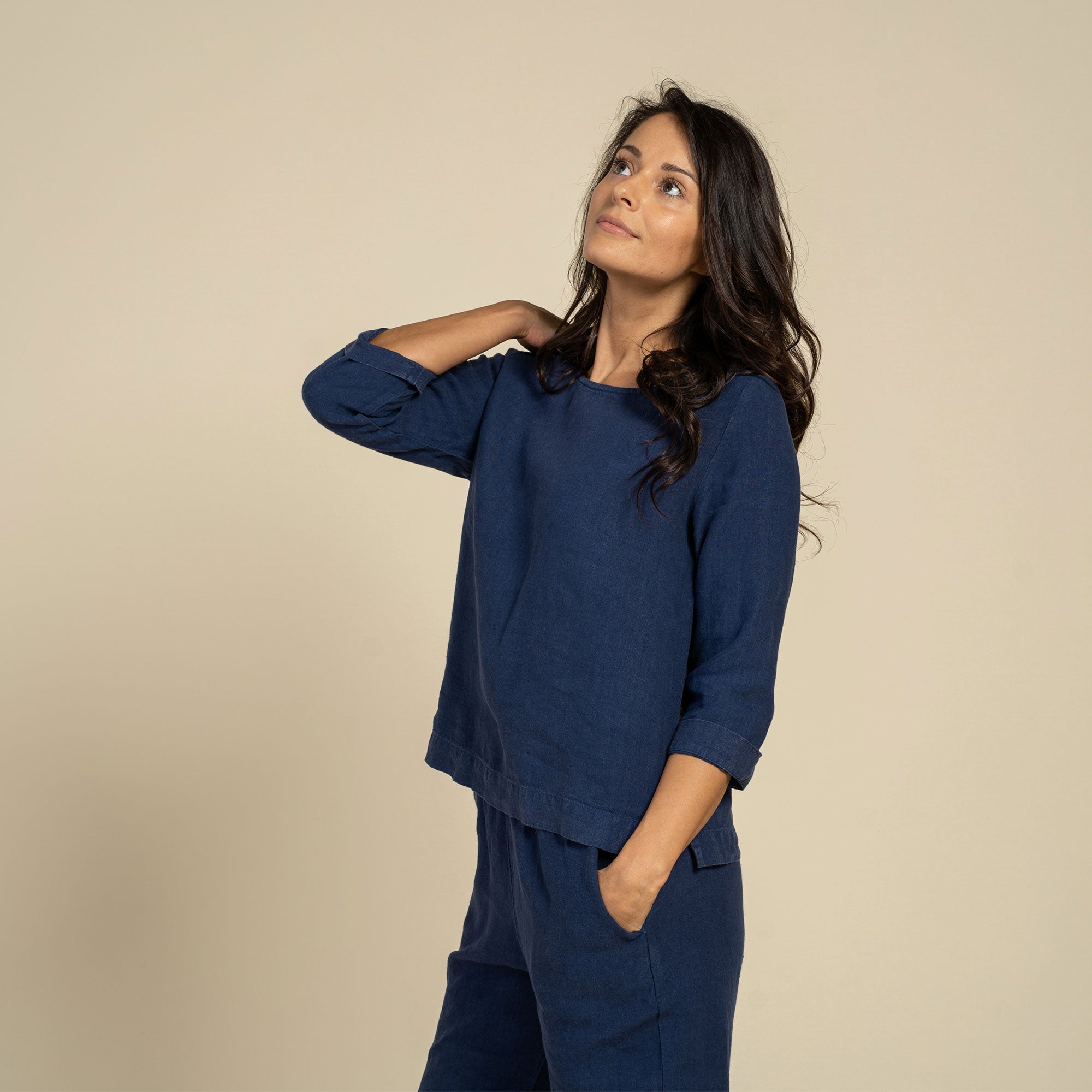 Stay cool, confident, and effortlessly chic in the Nora Linen blouse made with care from 100% premium Linen for all-day breathability and comfort. Lightweight and naturally cooling, this eco-friendly fabric makes long sleeve shirt your go-to top for warm-weather styling. Designed with refined simplicity, Linen shirt features a flattering boat neckline, a soft A-line silhouette, and elegant side slits that offer a relaxed fit around the hips. Boat neckline shirt tailored to move with you gracefully, comfortably, and with ease. From casual brunches to summer getaways, this versatile blouse pairs beautifully with jeans, Linen trousers, shorts, or skirts making Linen top a timeless staple for any woman’s wardrobe.