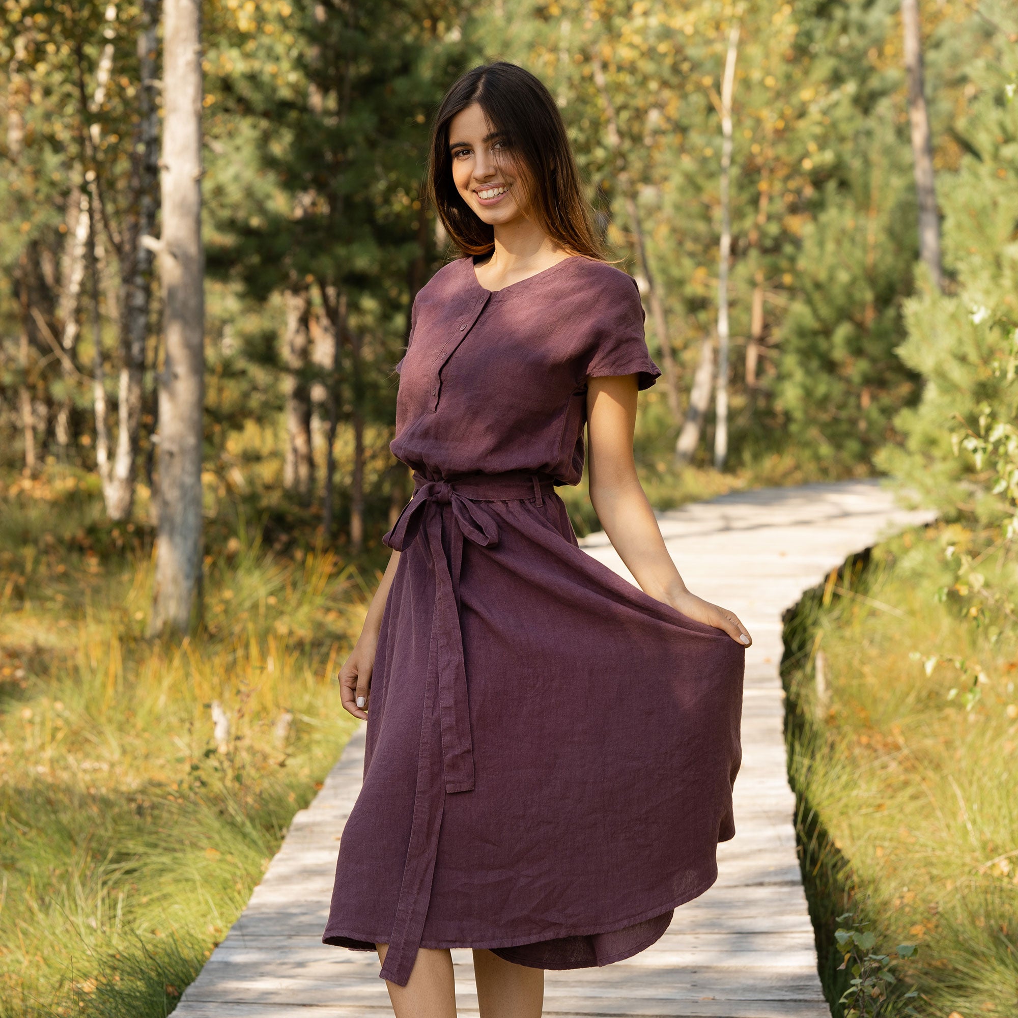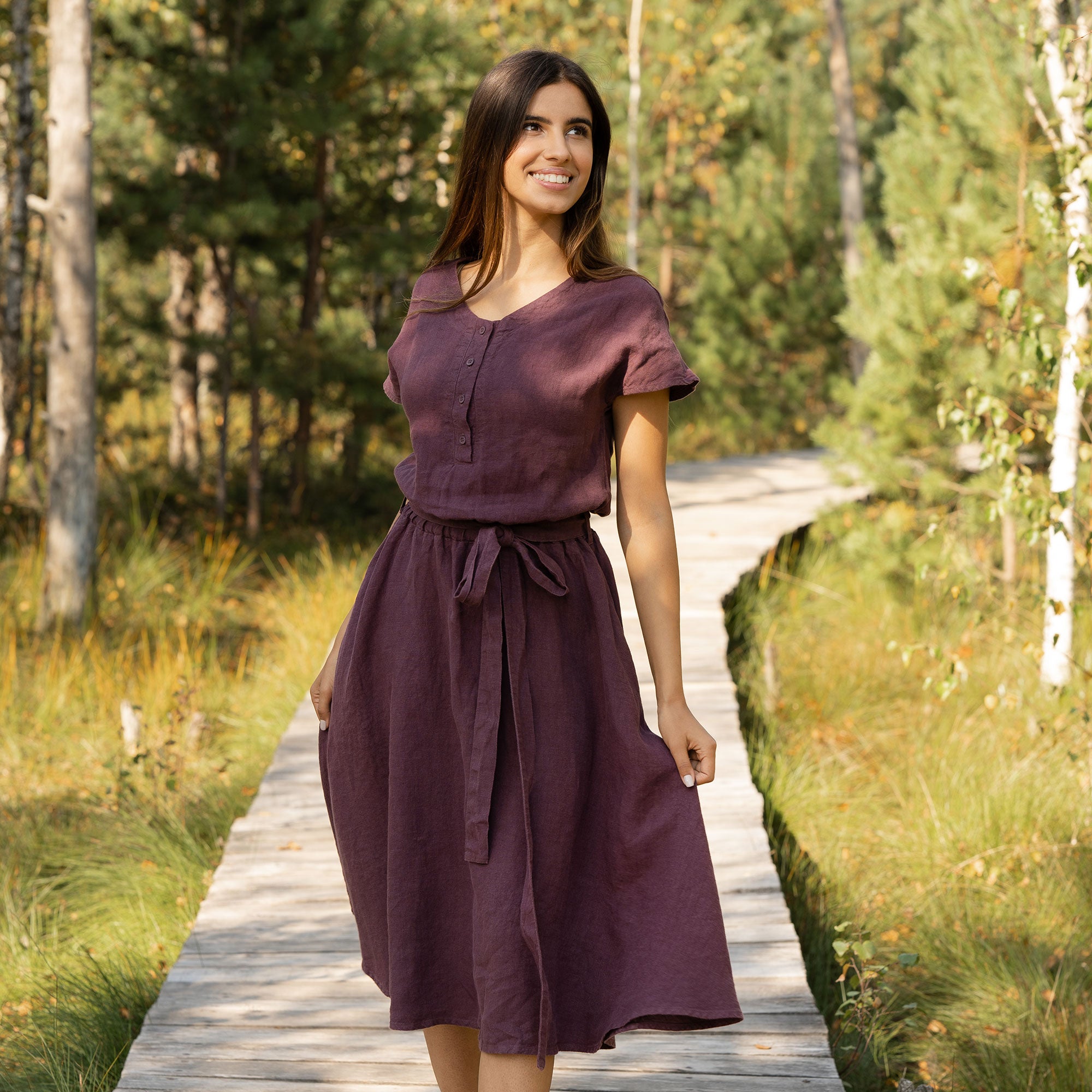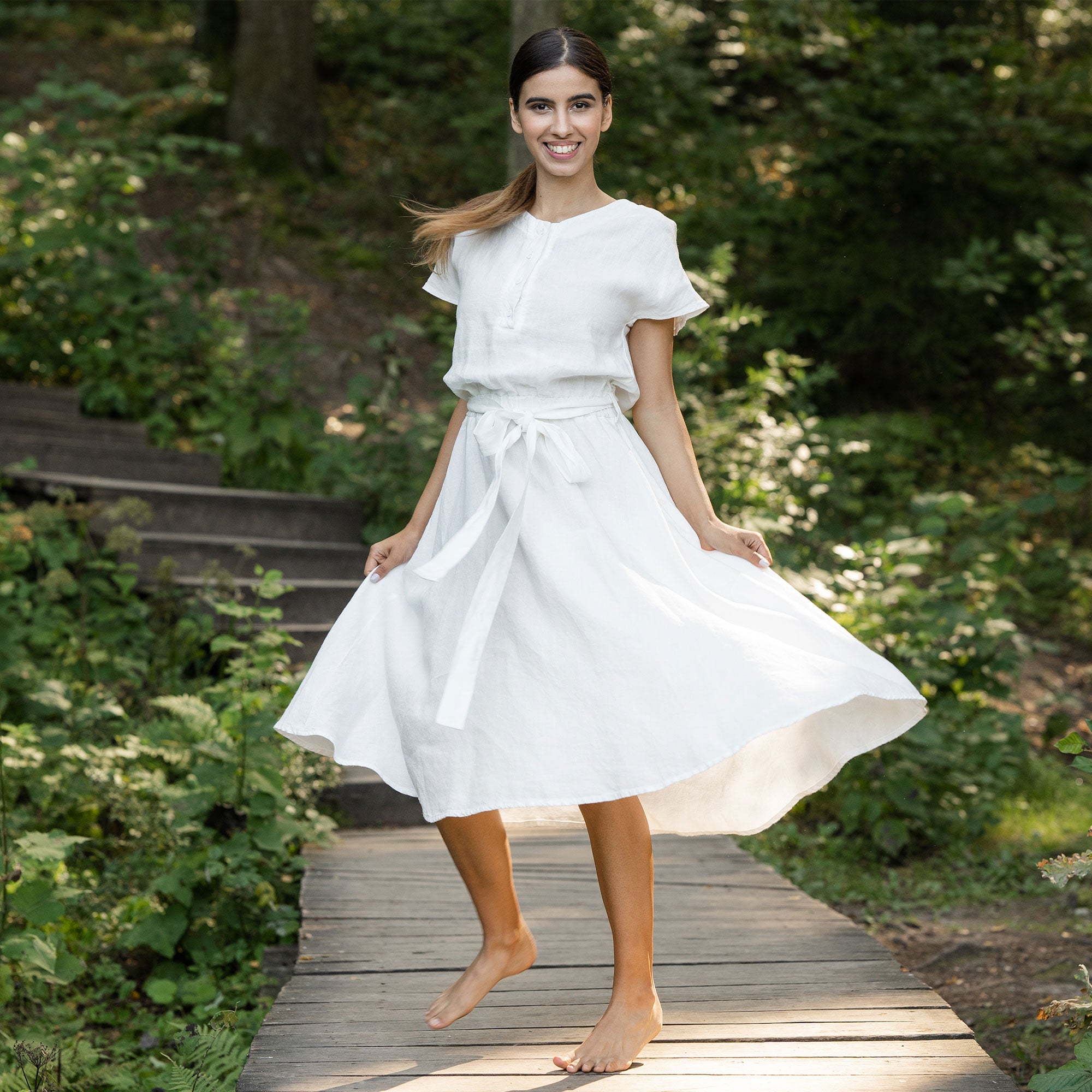 Featuring a flowy skirt, cap sleeves, and a gentle V-neckline, our women's dress is consciously made from organic 100% Linen fabric. You can dress this sun dress with heels or down with strappy sandals.