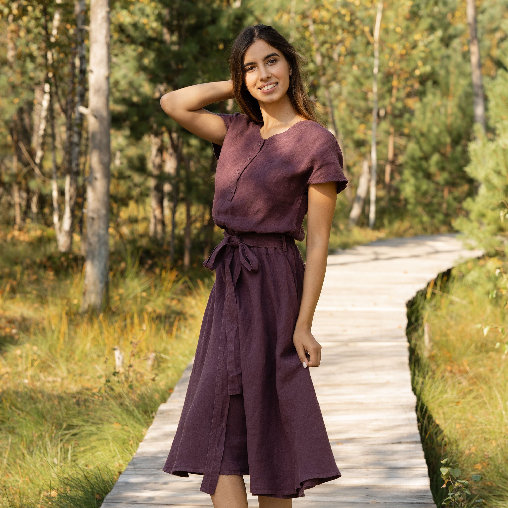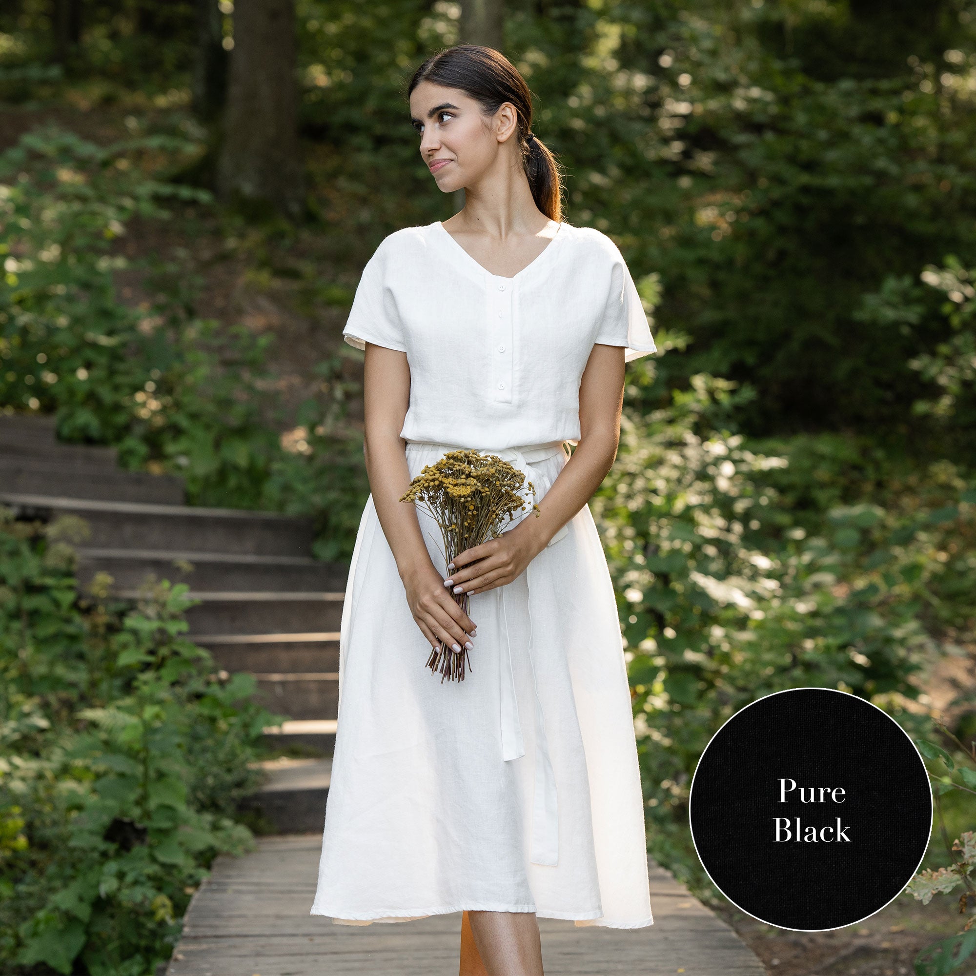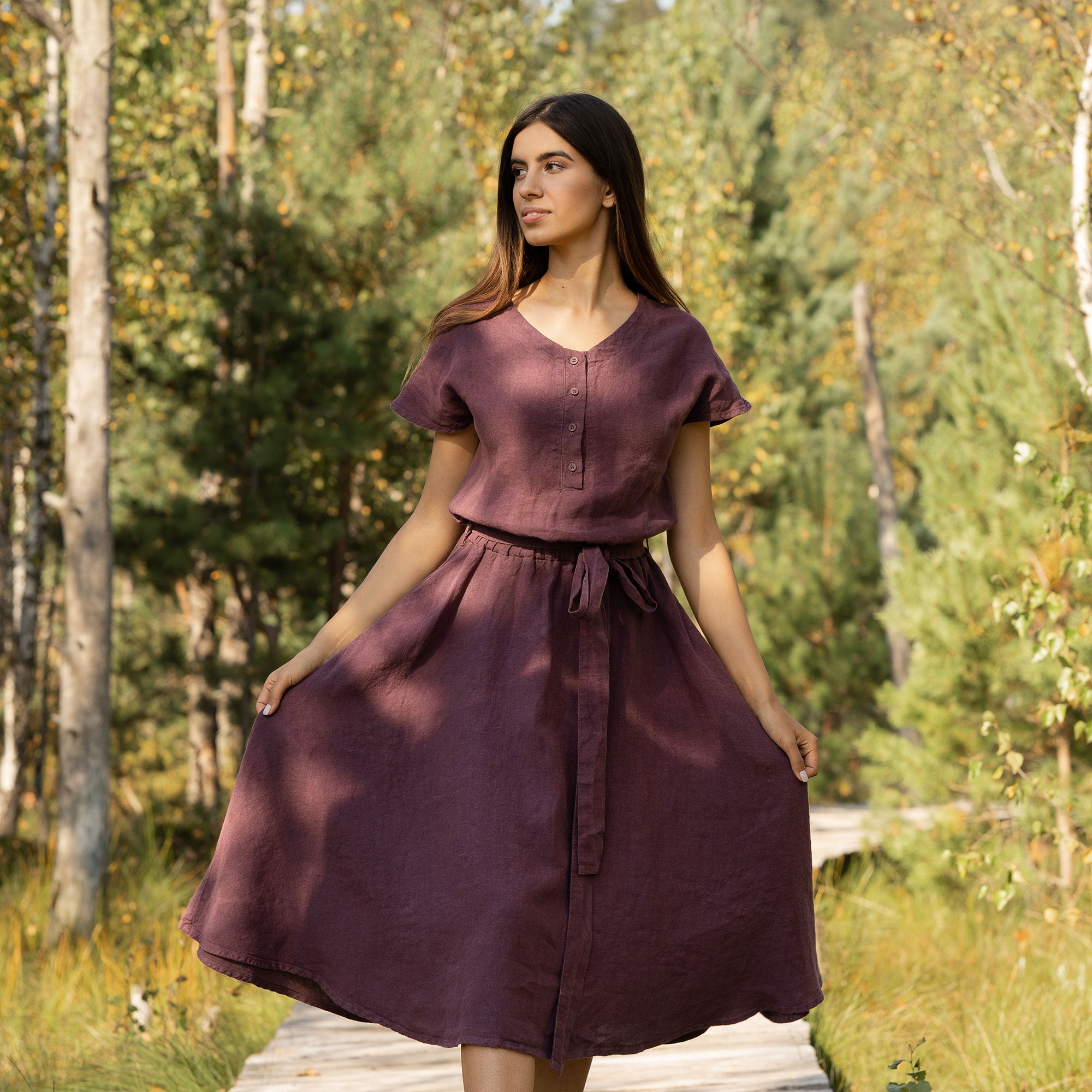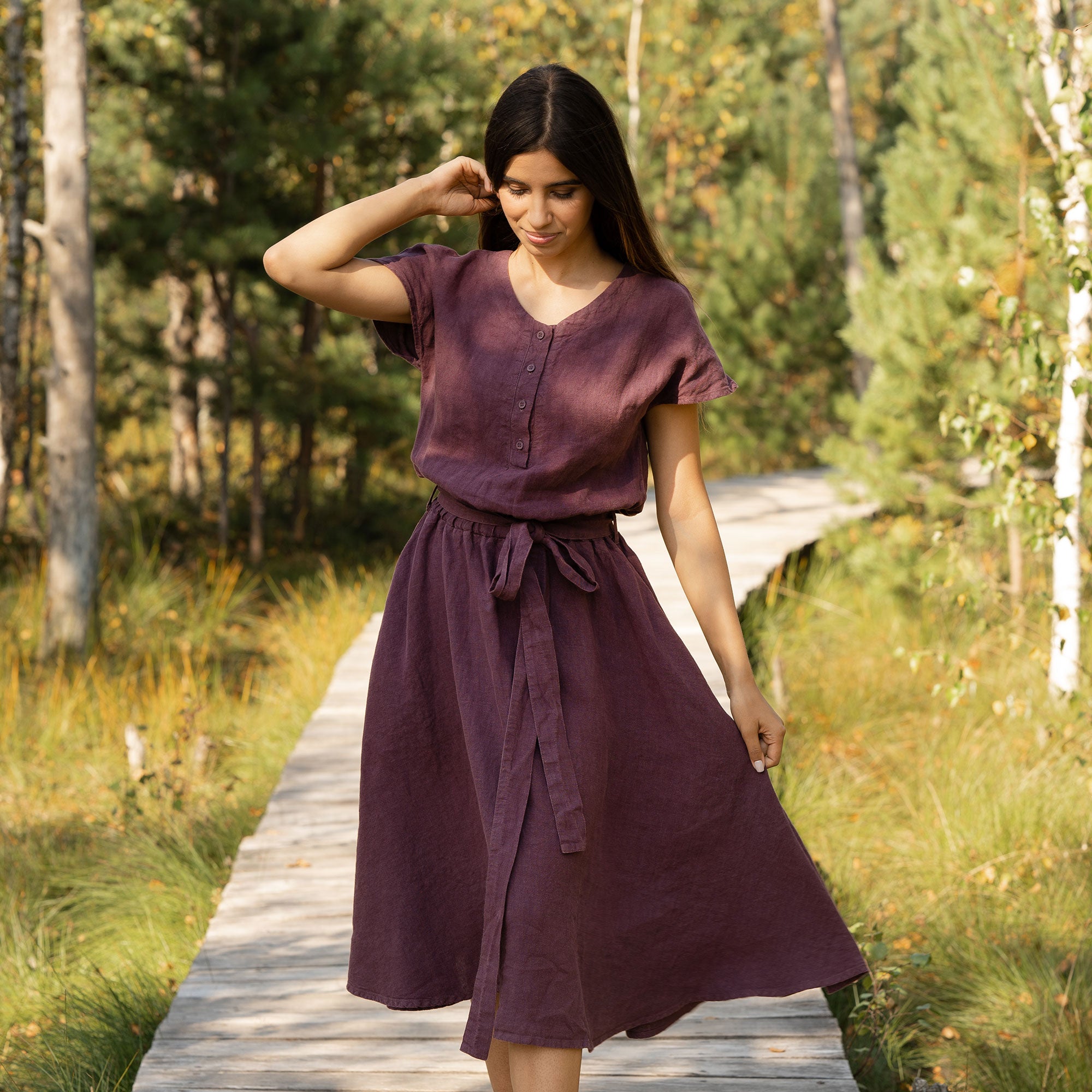 Featuring a flowy skirt, cap sleeves, and a gentle V-neckline, our women's dress is consciously made from organic 100% Linen fabric. You can dress this sun dress with heels or down with strappy sandals.