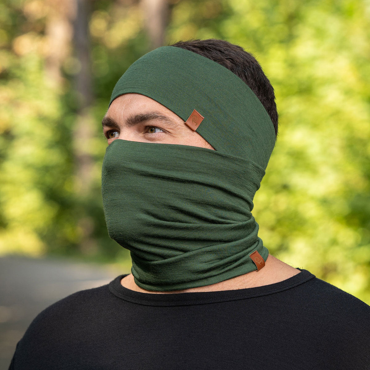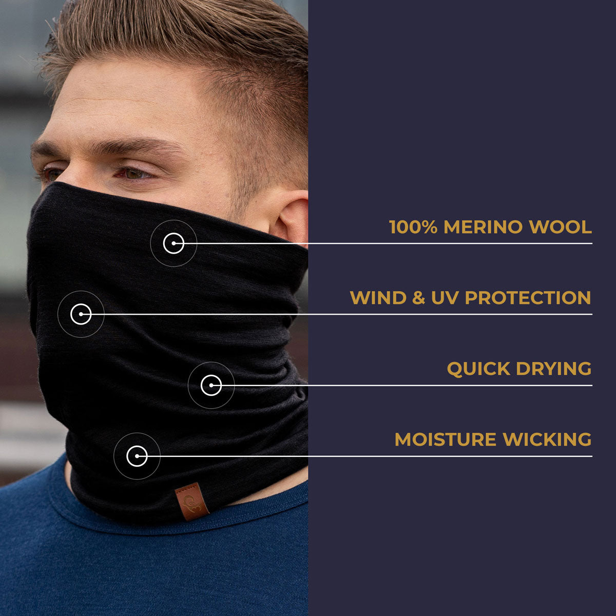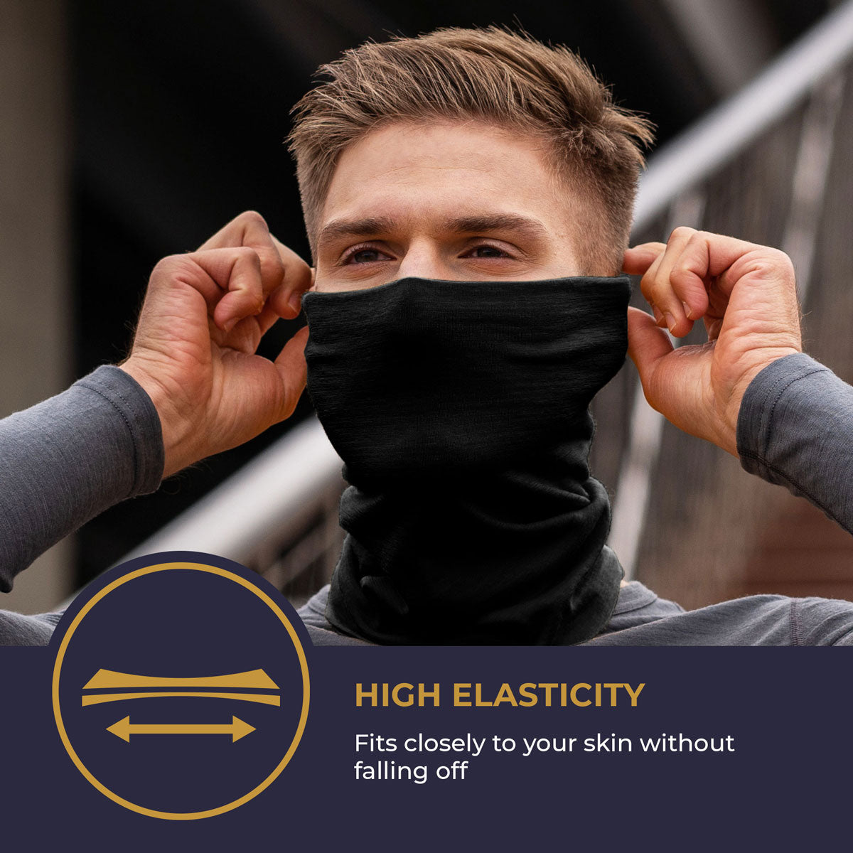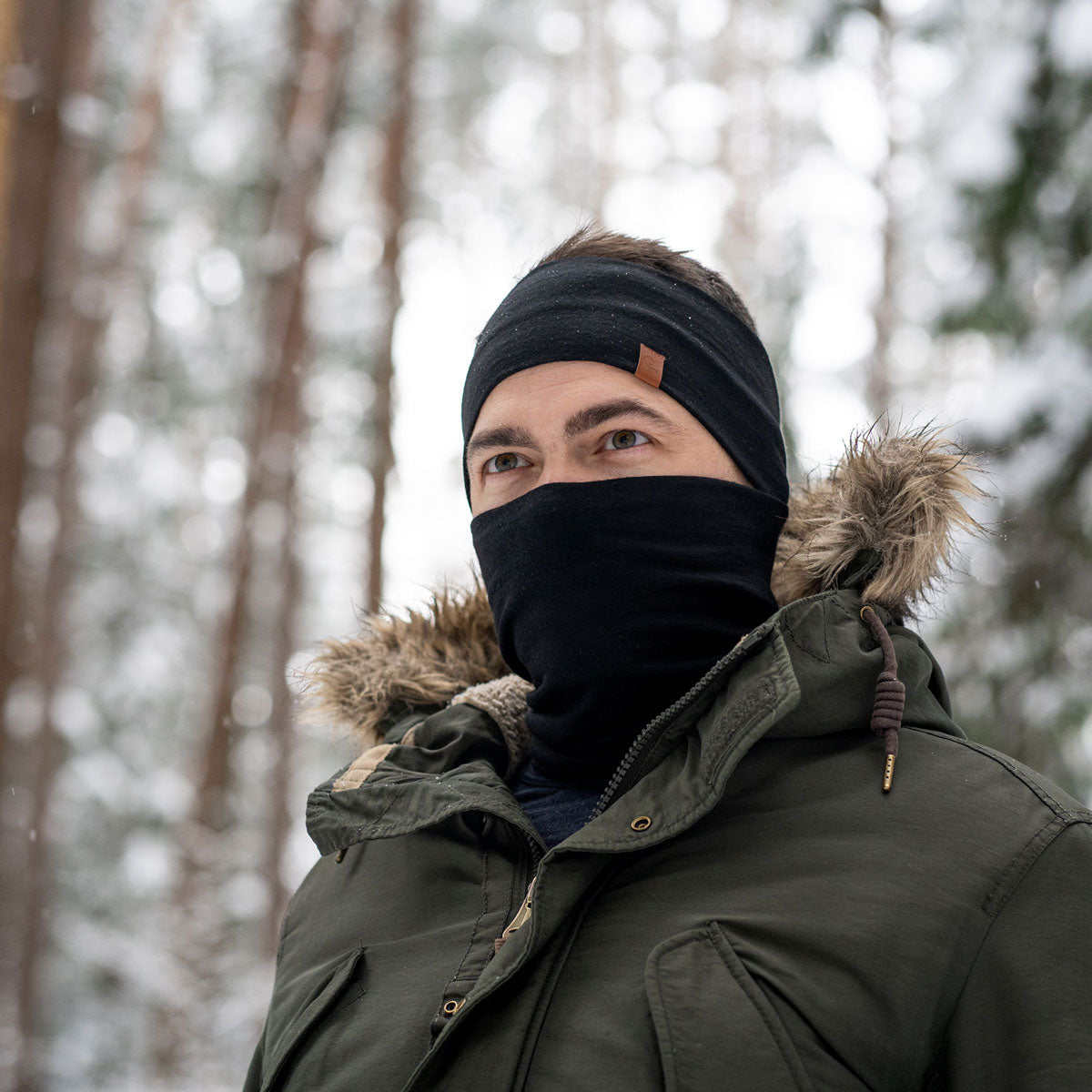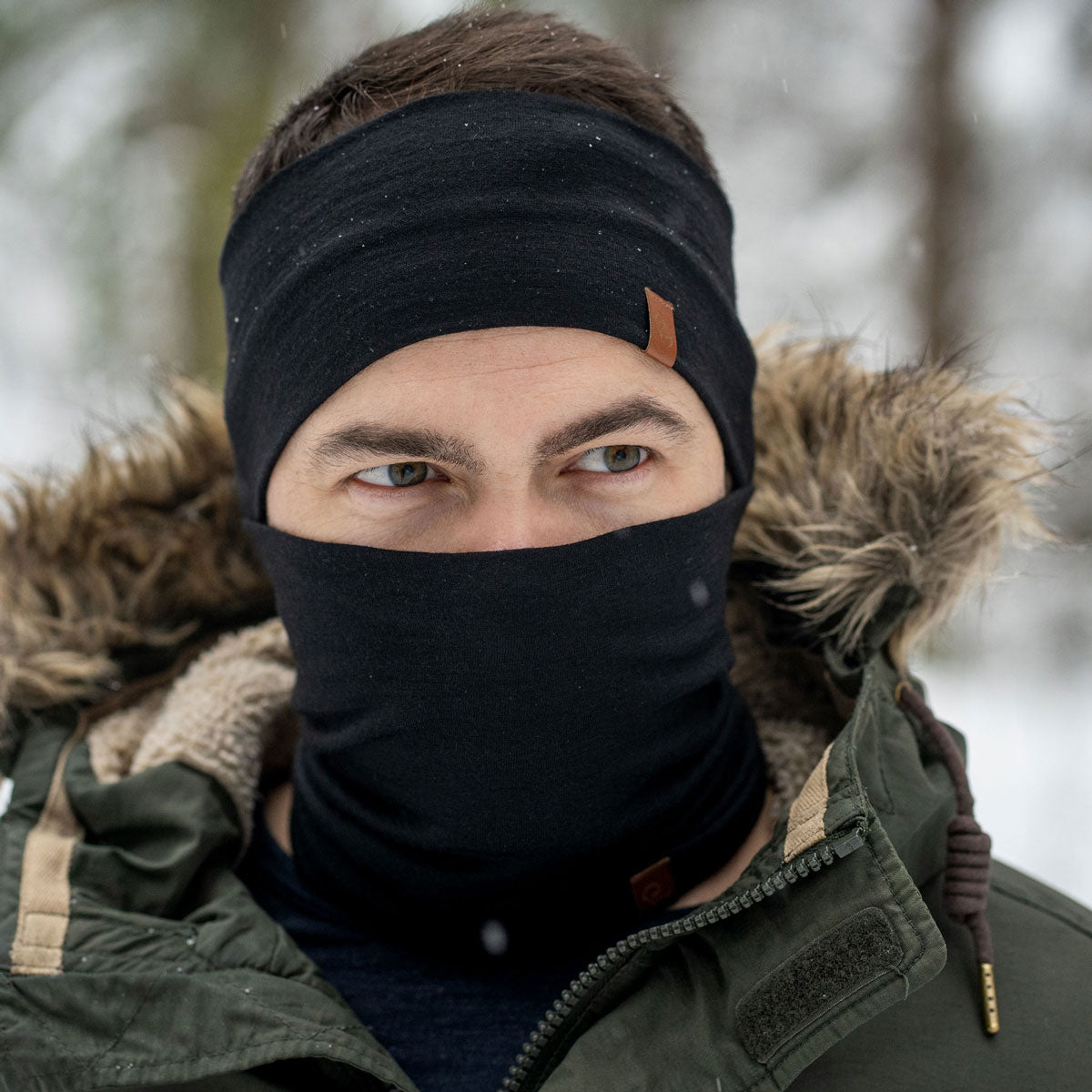 Breathable, stretchy, and eco-friendly, this unisex set includes a black 100% Merino wool headband and matching neck gaiter. Together, the wool set offers reliable protection in cold weather – the wide headband fully covers the ears, while the odor-resistant gaiter shields the neck and face. Made from ethically sourced 100% Merino wool, both pieces are exceptionally soft, breathable, and moisture-wicking, making Merino accessories ideal for winter sports and long outdoor adventures. The flexible headband stays firmly in place, keeping hair and sweat out of your face. The versatile neck gaiter is long enough to cover the neck, face, and ears at once, providing dependable comfort in harsh conditions.
