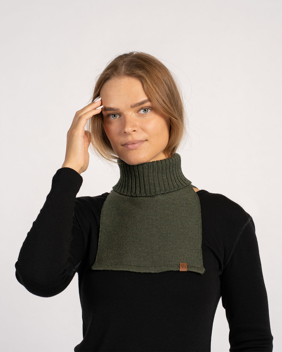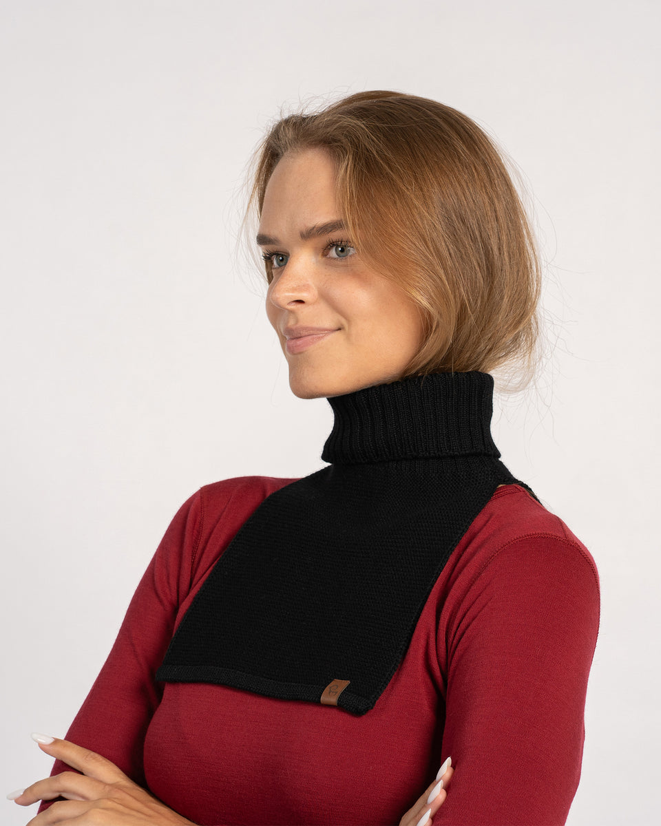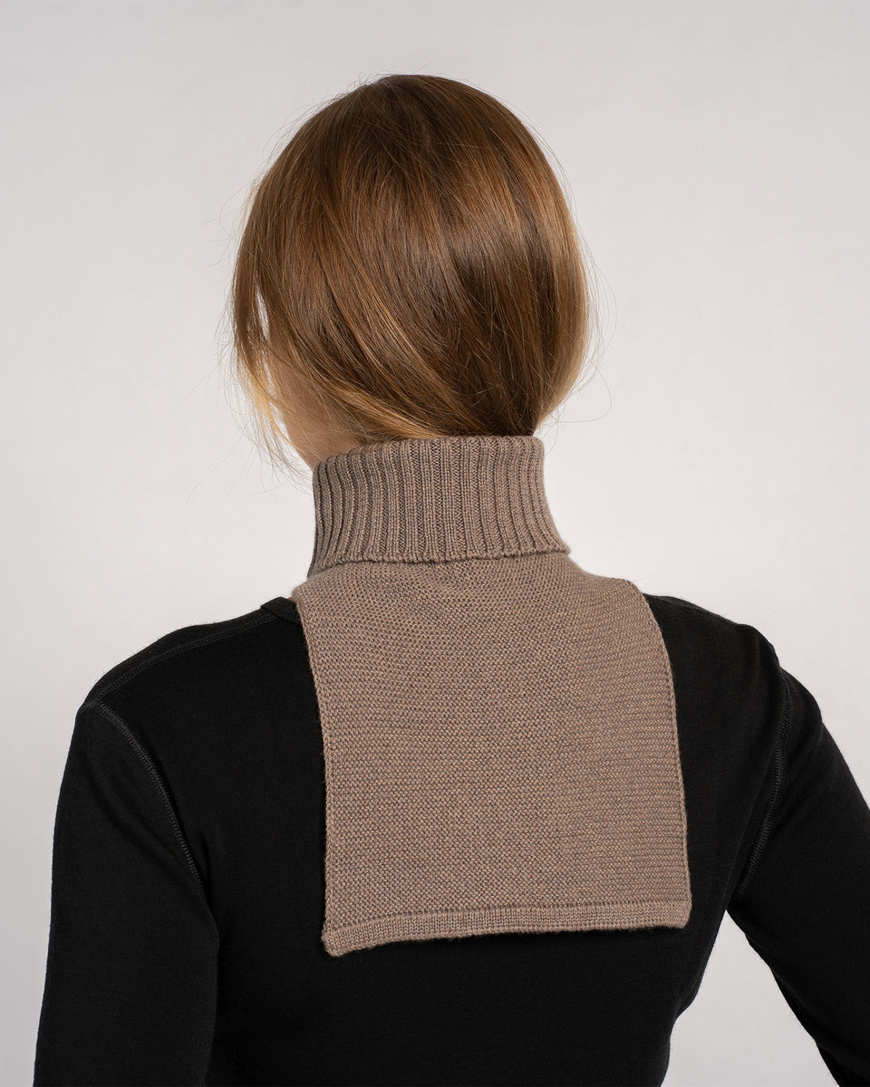 Introducing our Merino wool knit dickie, a new favorite layer. It is a sleeveless alternative to a sweater which you can hide underneath shirts, jackets, or coats, giving the appearance that you are layering overtop of a turtleneck. Not only this turtle neck snood will keep your neck cozy during cool days, but it can add superior warmth without creating extra bulk. Knitted from 100% Merino wool yarns, this rollneck dickie inherited its moisture-wicking properties, meaning it will absorb a great amount of its own weight in water without feeling wet to touch. Unlike the traditional wool, the fabric is hypoallergenic and soft-to-touch since the Merino fibers are smoother on their surface.