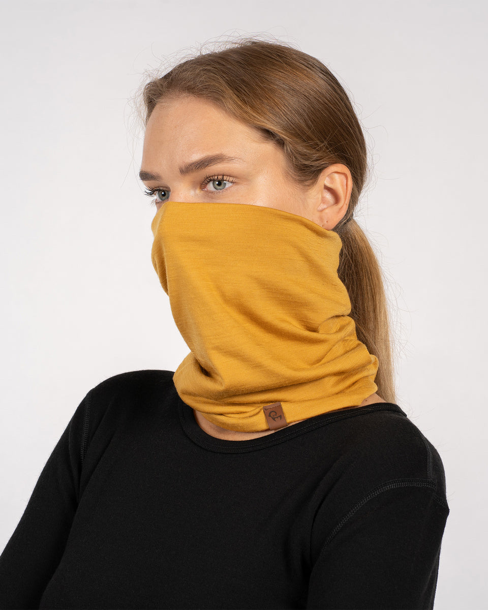 Crafted for both women and men, the stylish gaiter features a seamless design and comes in a bright yellow color. With comfort in mind, the breathable neck warmer is knitted from luxurious and organic Merino wool.