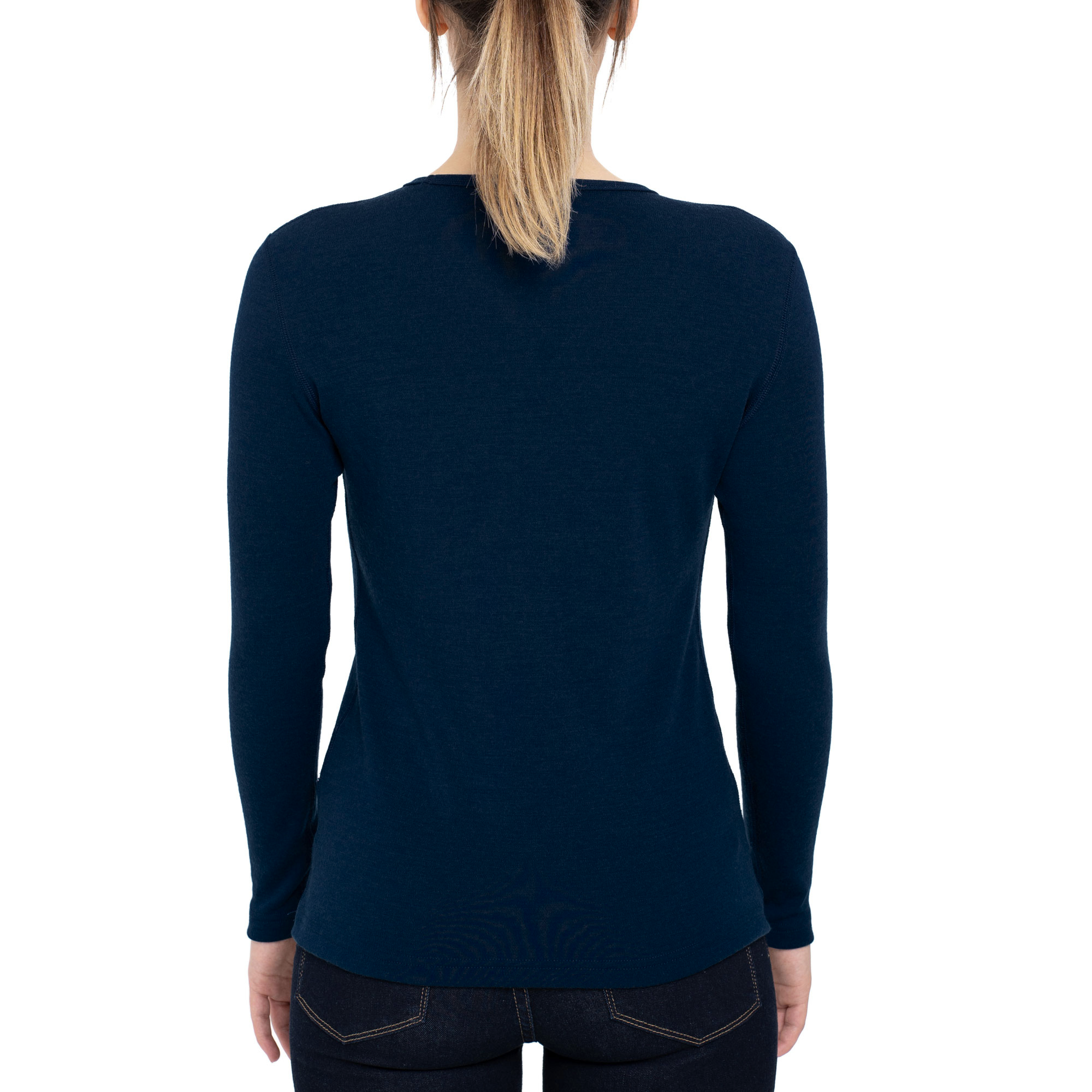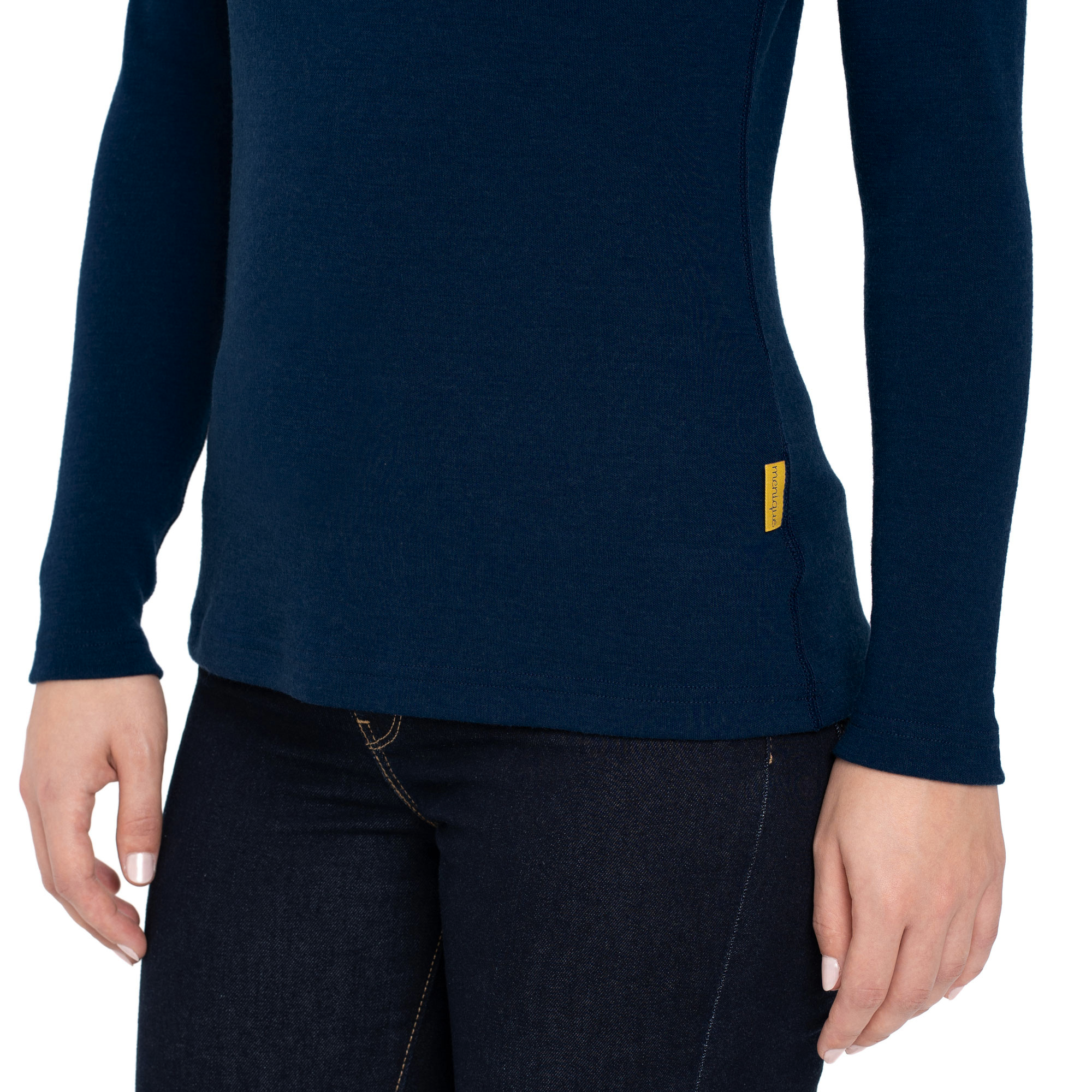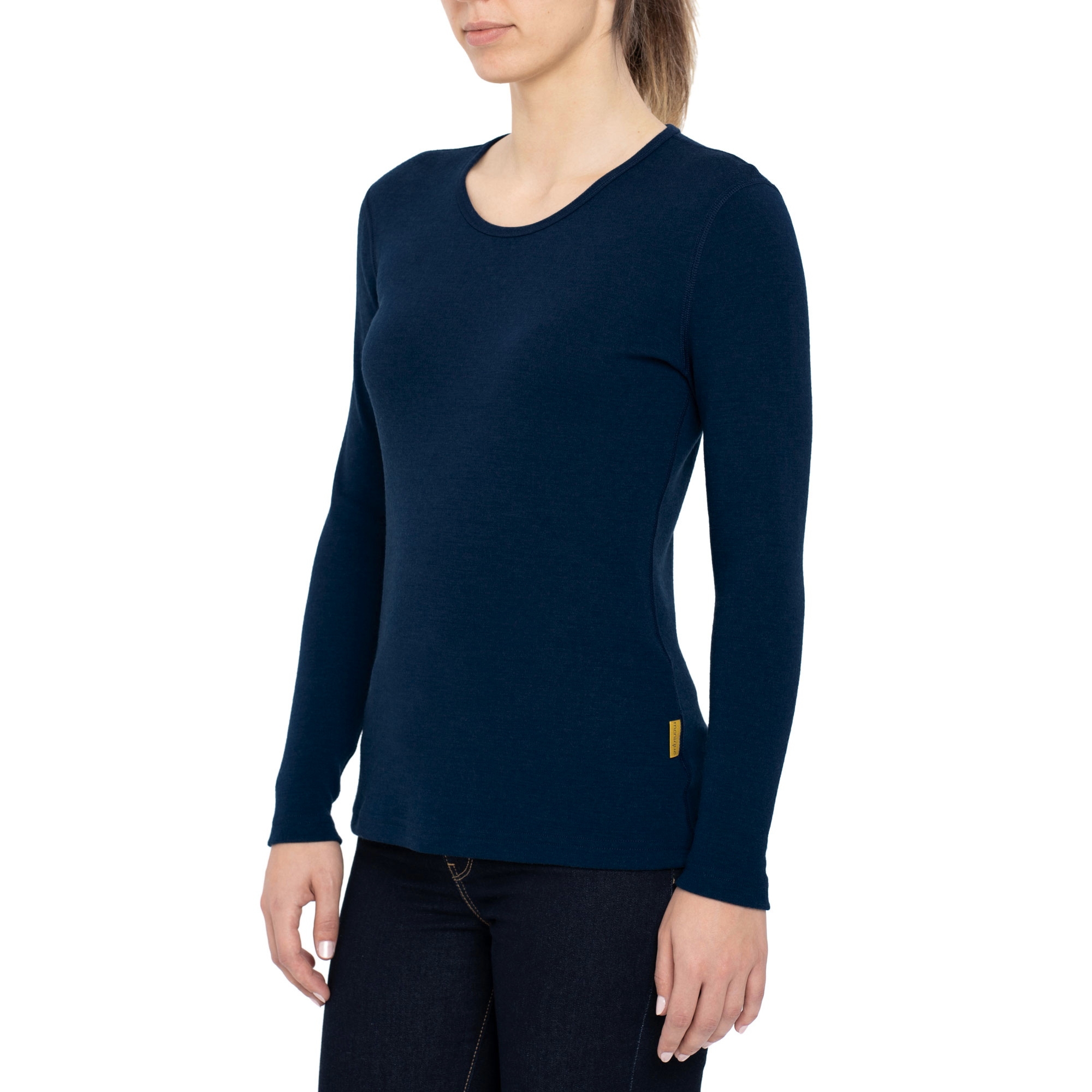 The midweight women’s long sleeve crew promises a chafe-free experience with flatlock edging for comfort in any scenario, indoors or out. Made from 100% Merino wool, this breathable, odor- and wrinkle-resistant top regulates your core temperature, making it a must-have for any wardrobe. Perfect for lounging or active days, it’s easy to layer under sweaters and jackets. With its midweight structure and regular fit, this versatile piece keeps you warm, cozy, and stylish in all seasons while providing excellent moisture-wicking in cool to cold conditions.